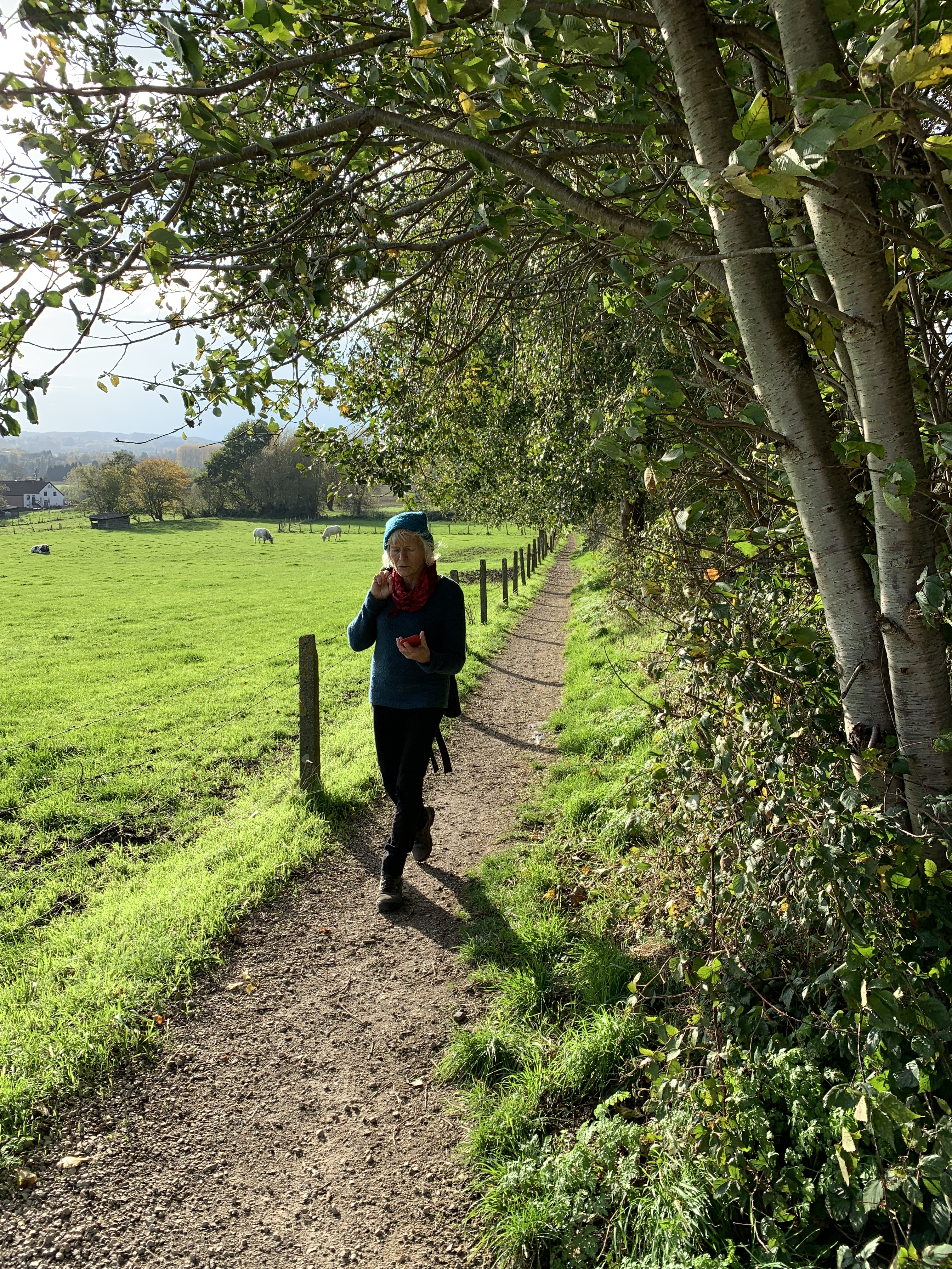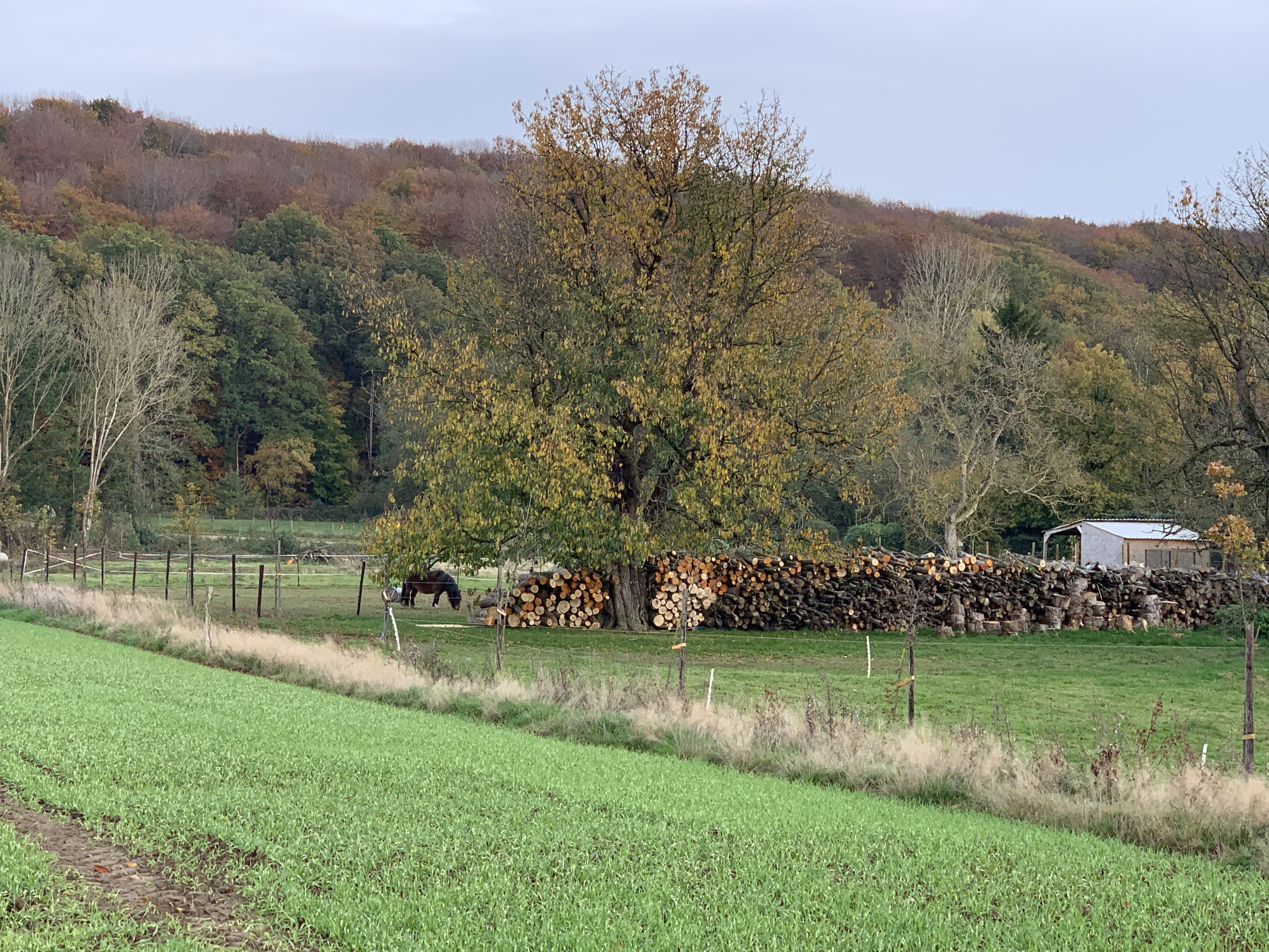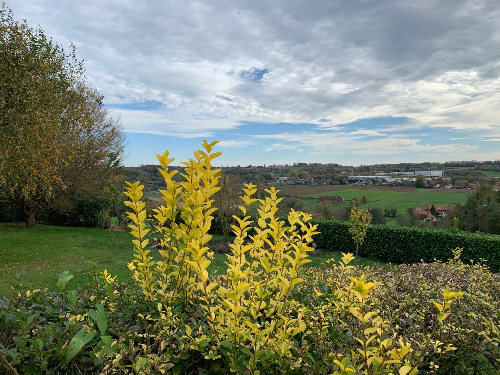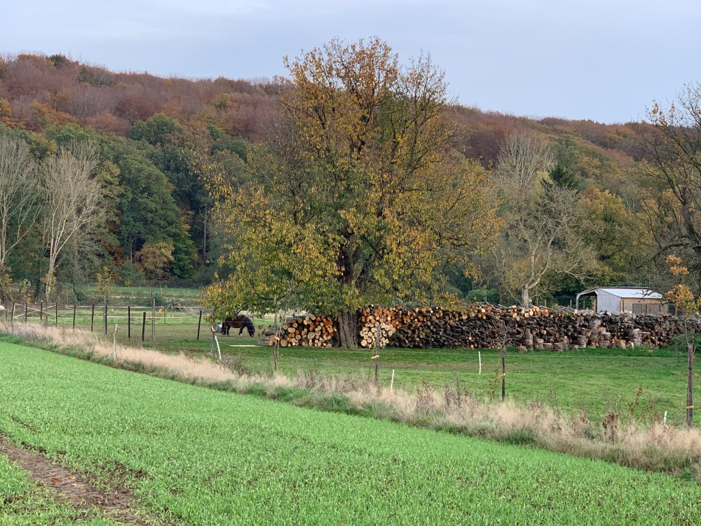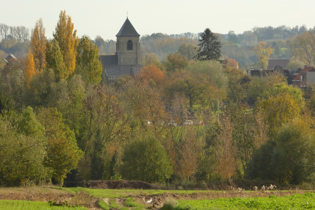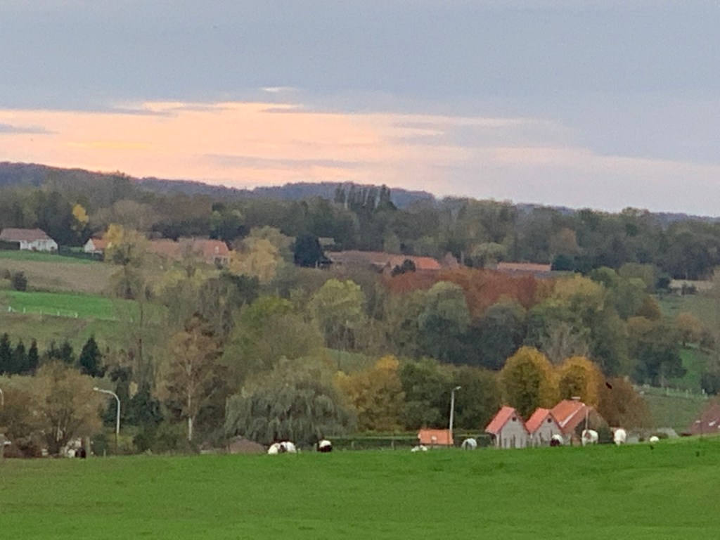 Via veldwegen wandelen we naar Asse. De heuvelachtige streek verzekert ons van mooie panorama’s waar we ons aan vergapen. Wat een mooie streek.