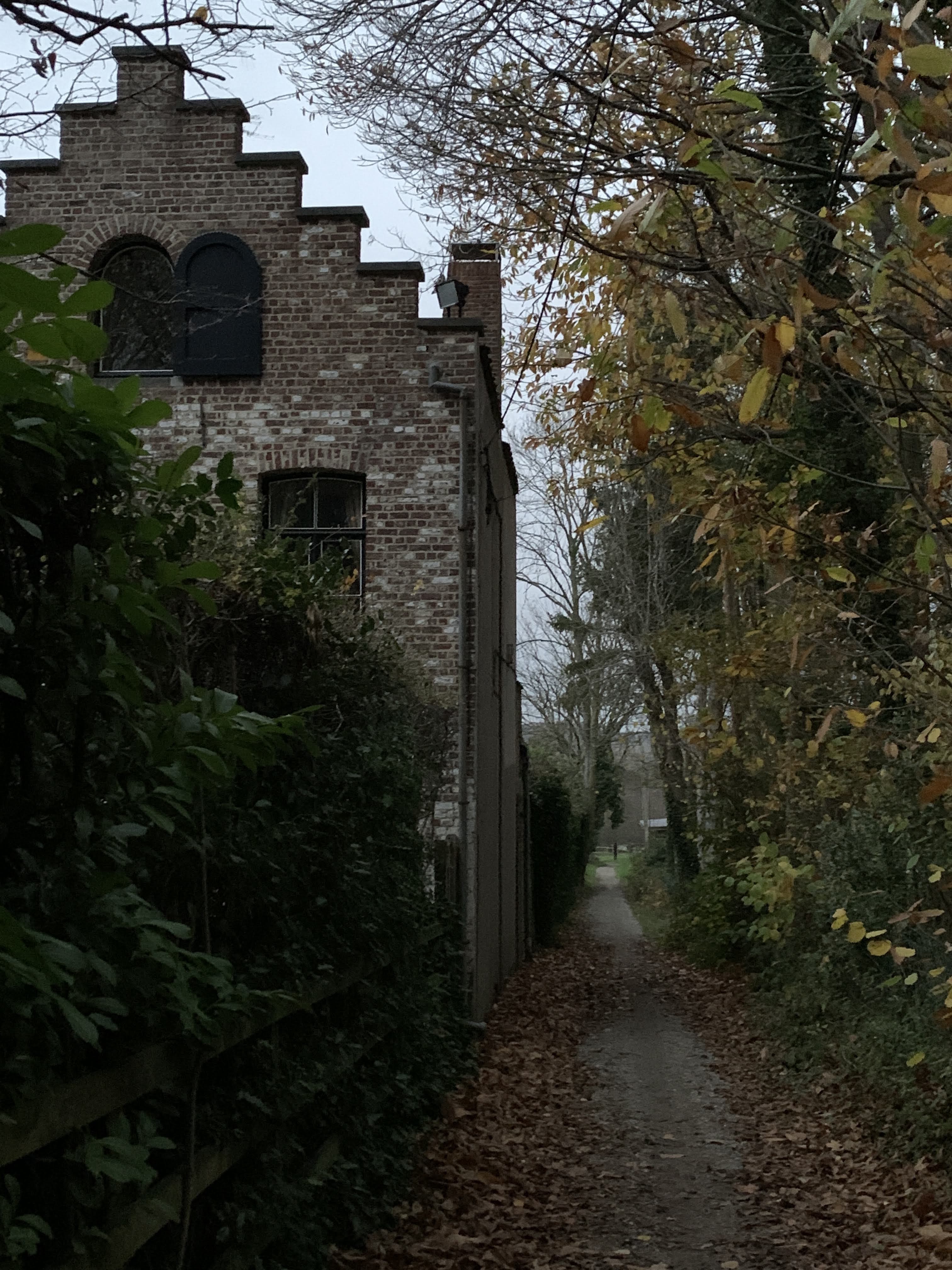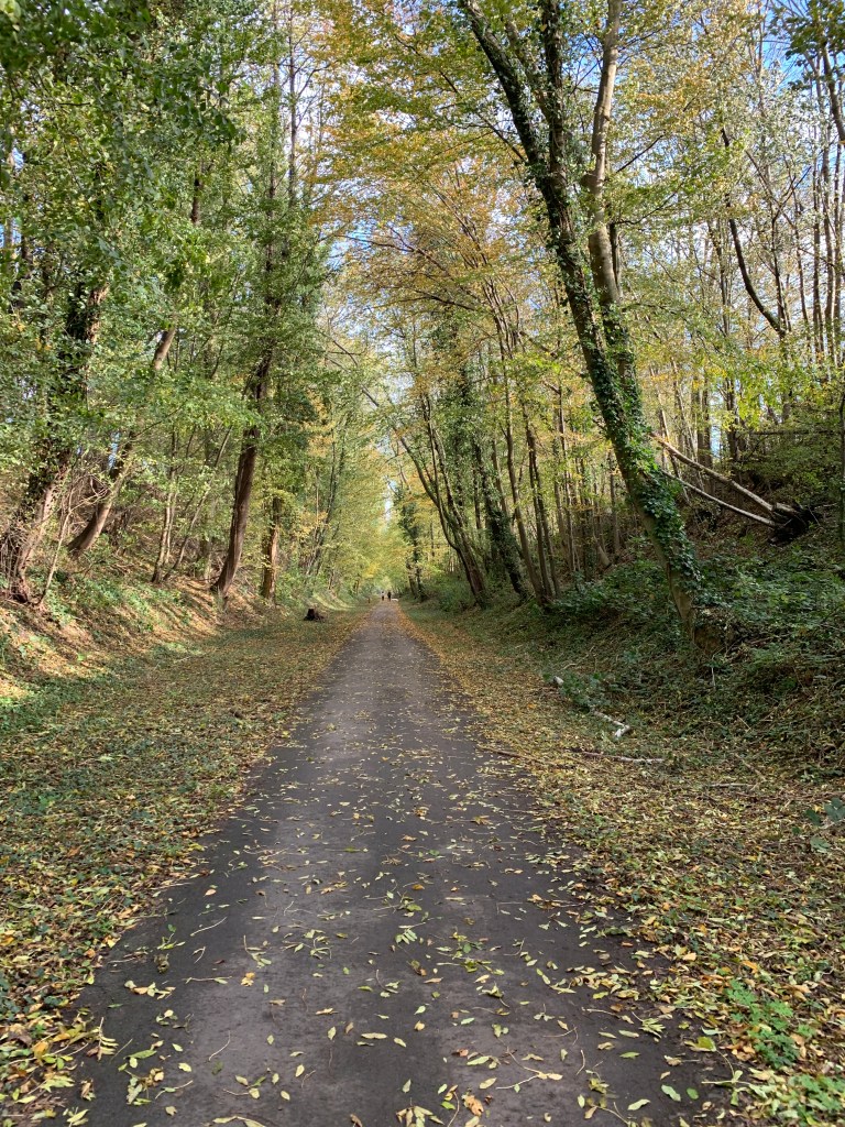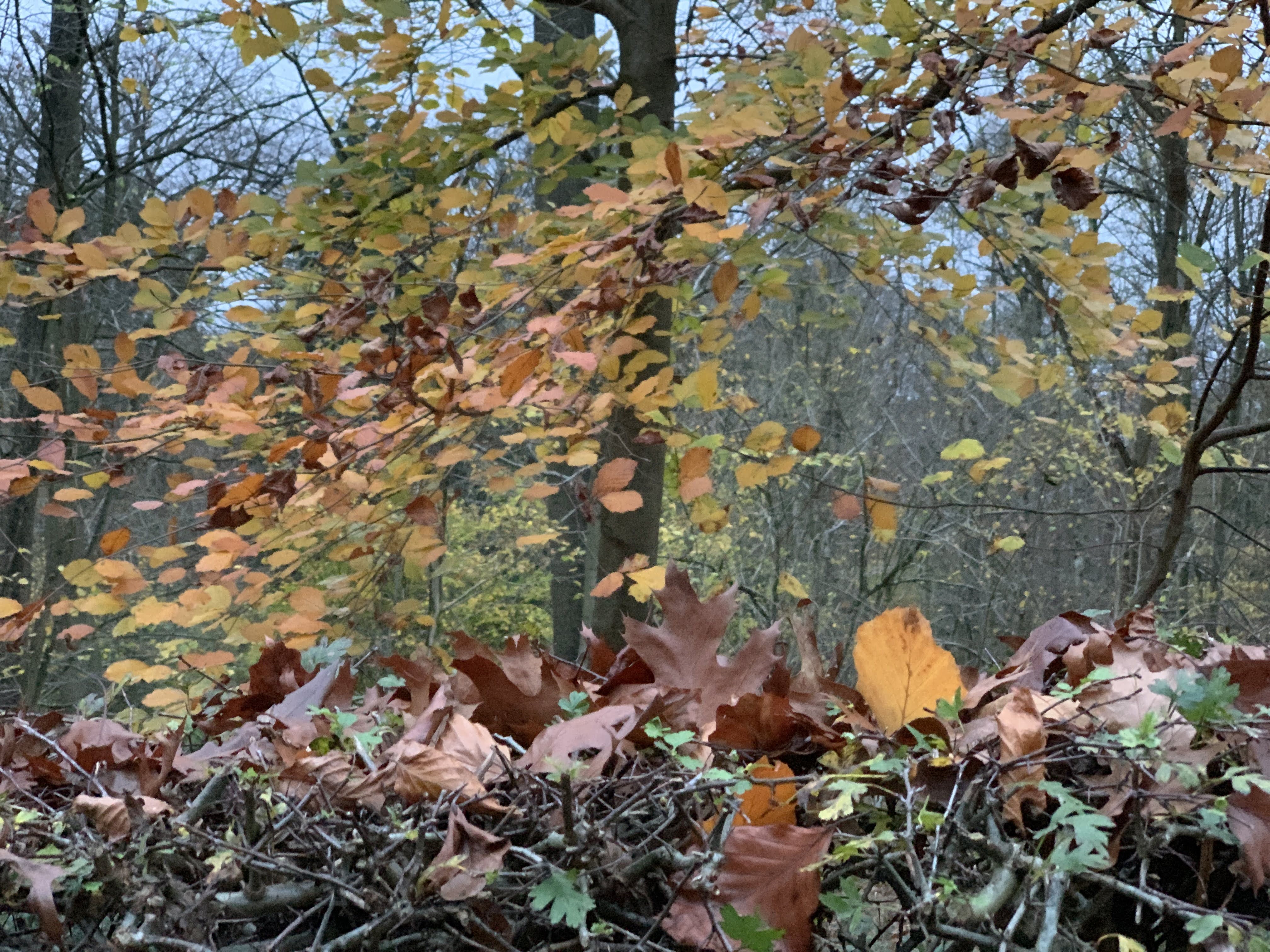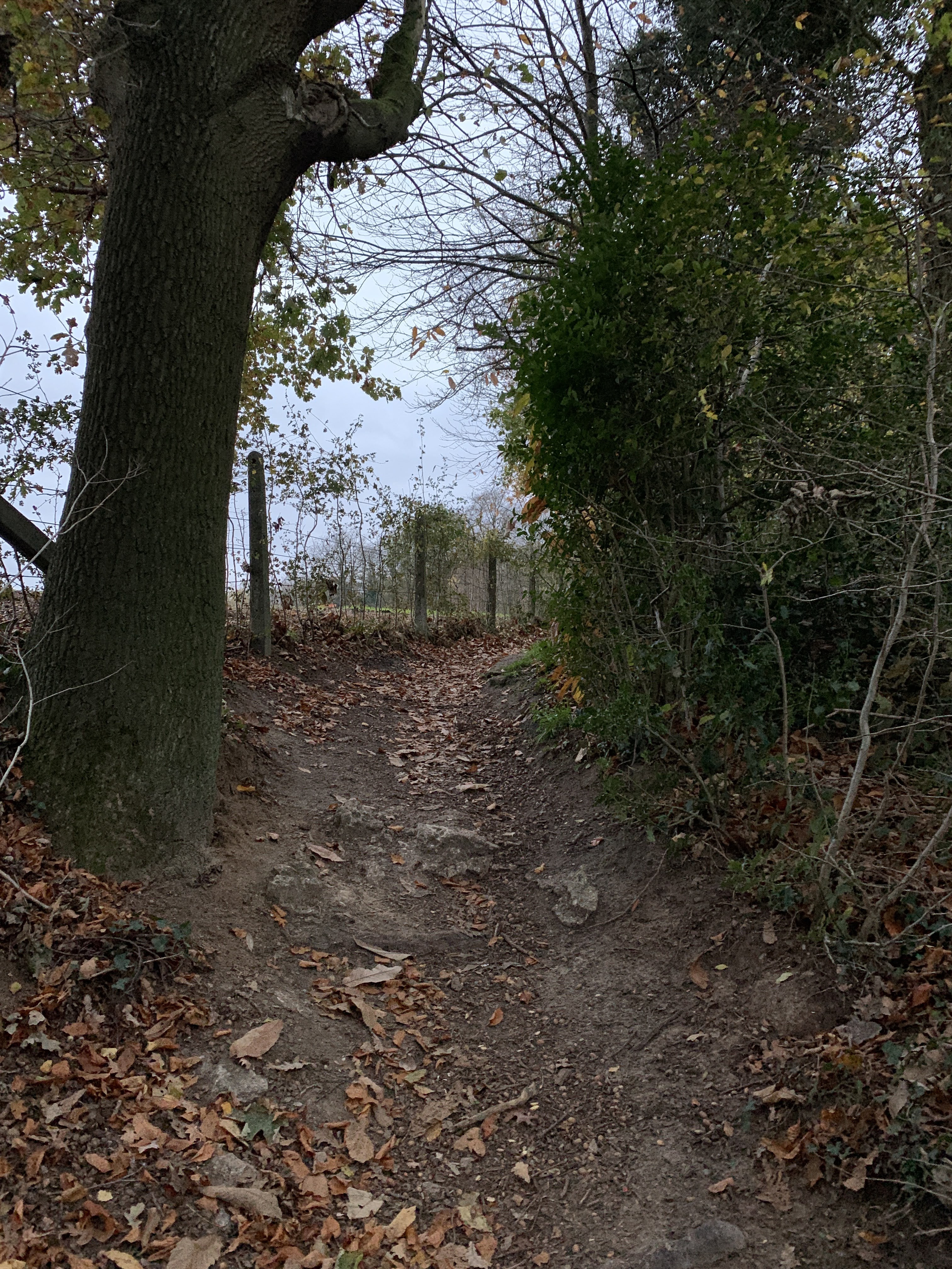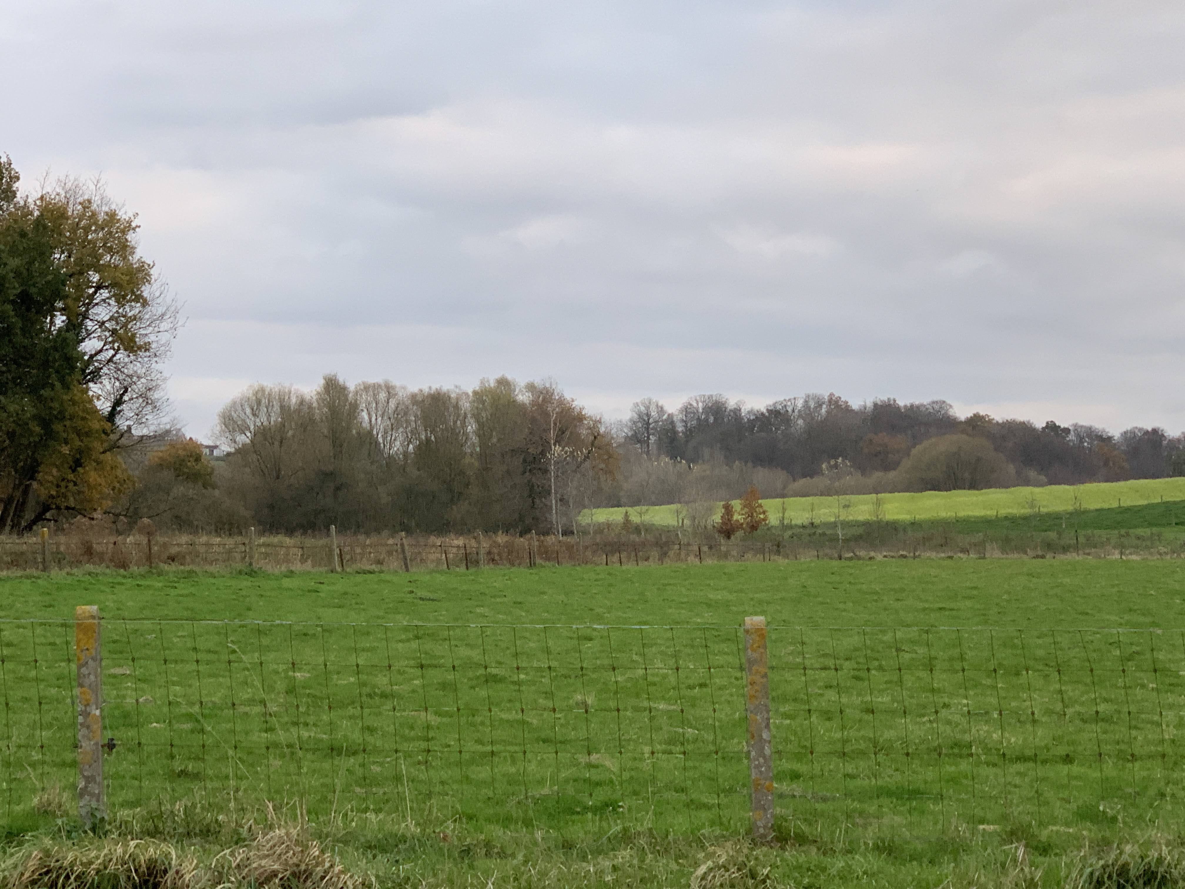 Onder een grijze hemel vatten we onze tocht aan en zakken langs het bospad naast de Koekoek af richting Asbeek.