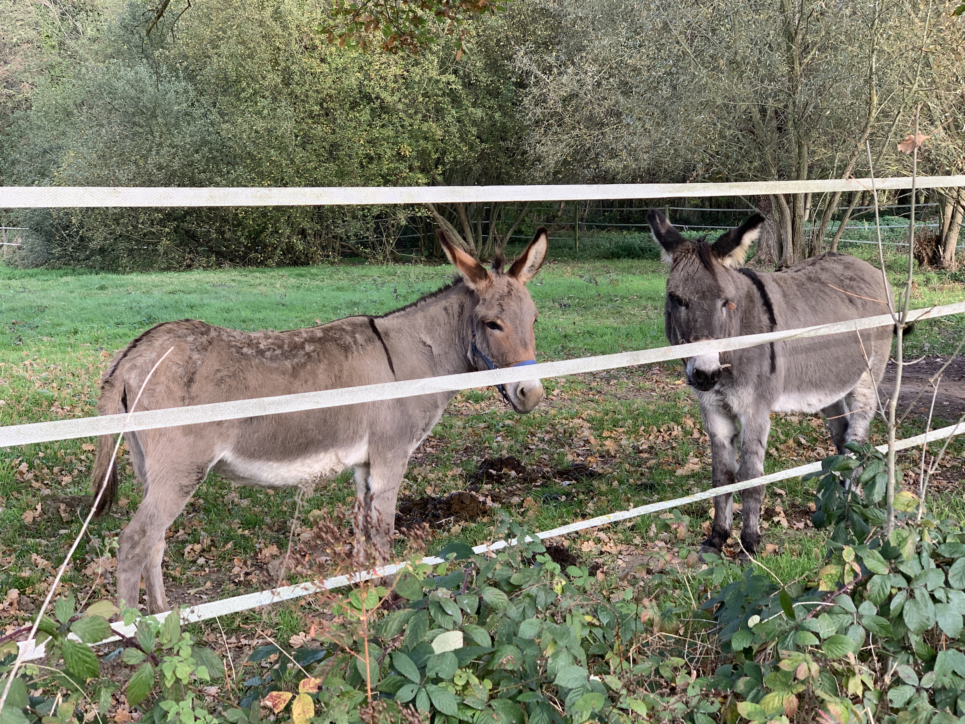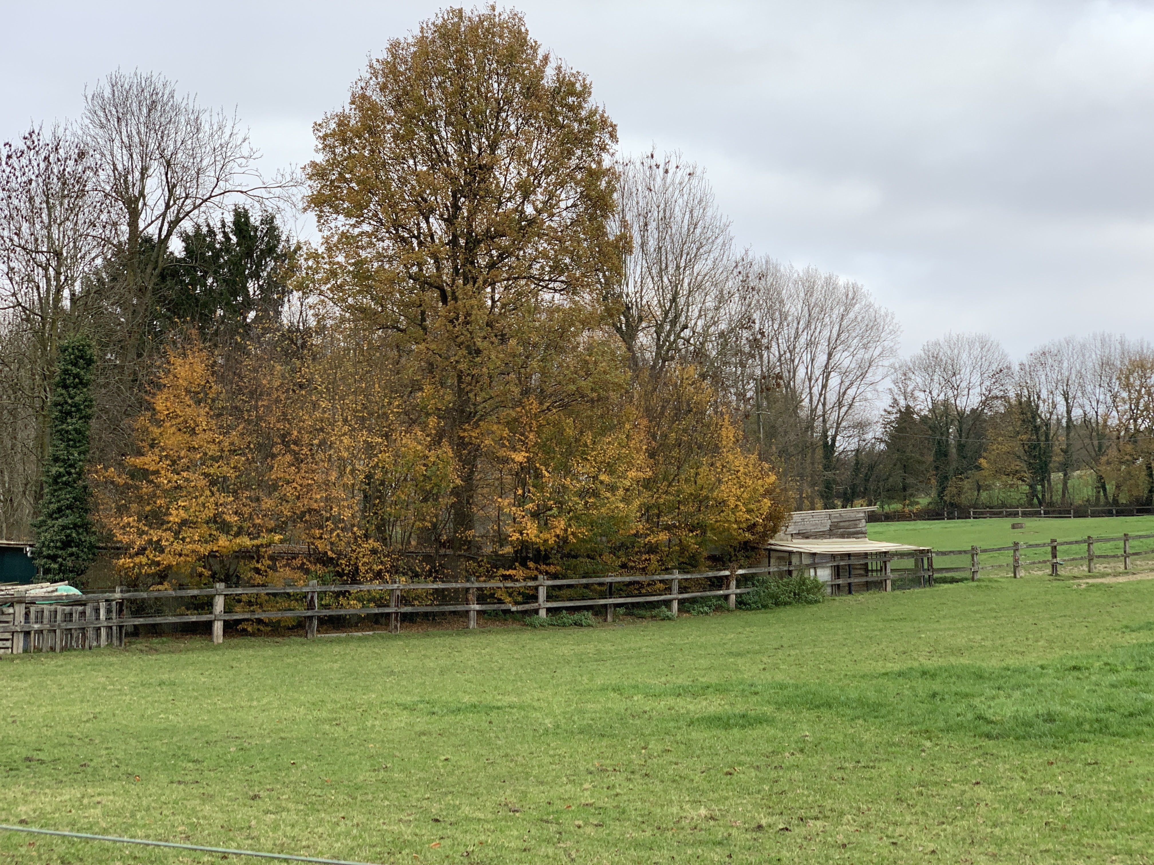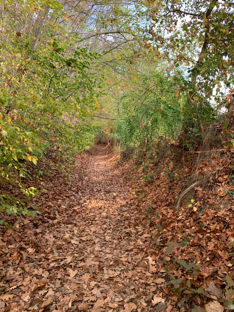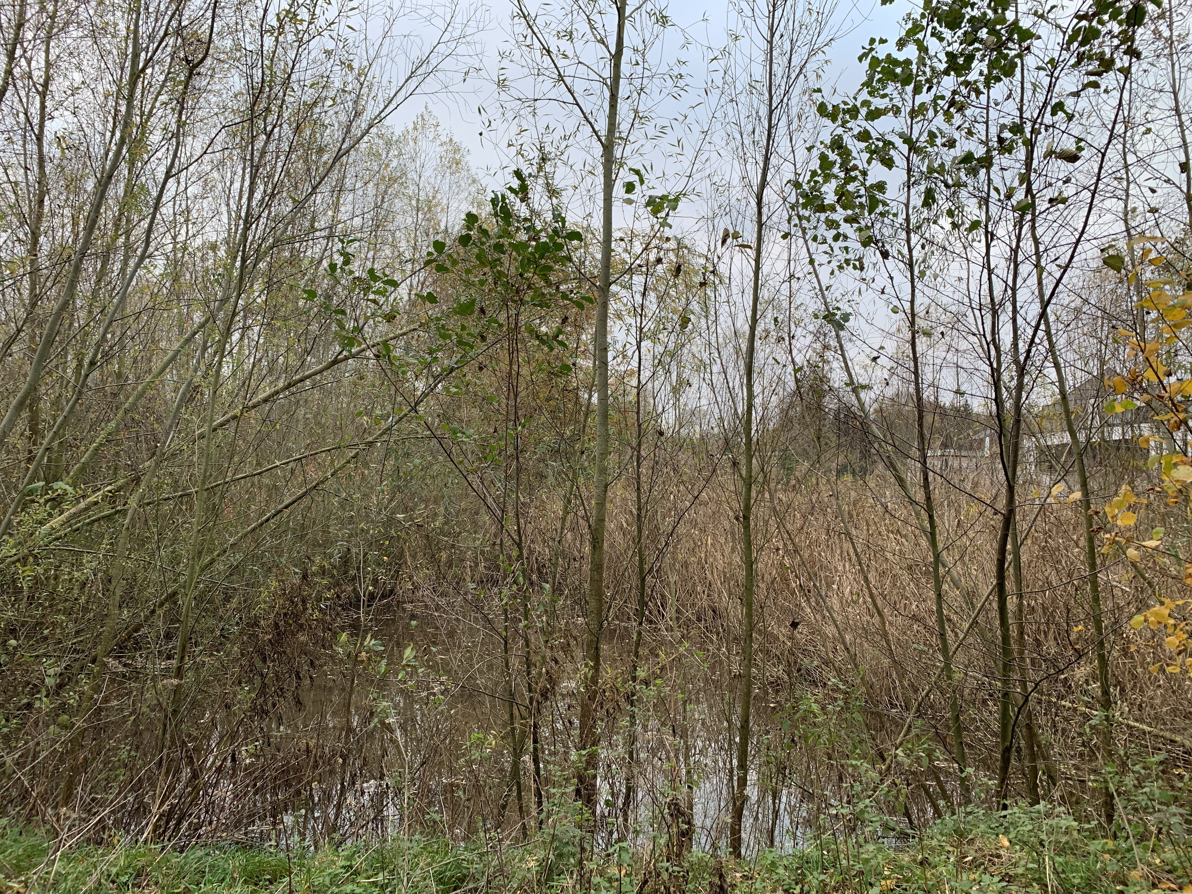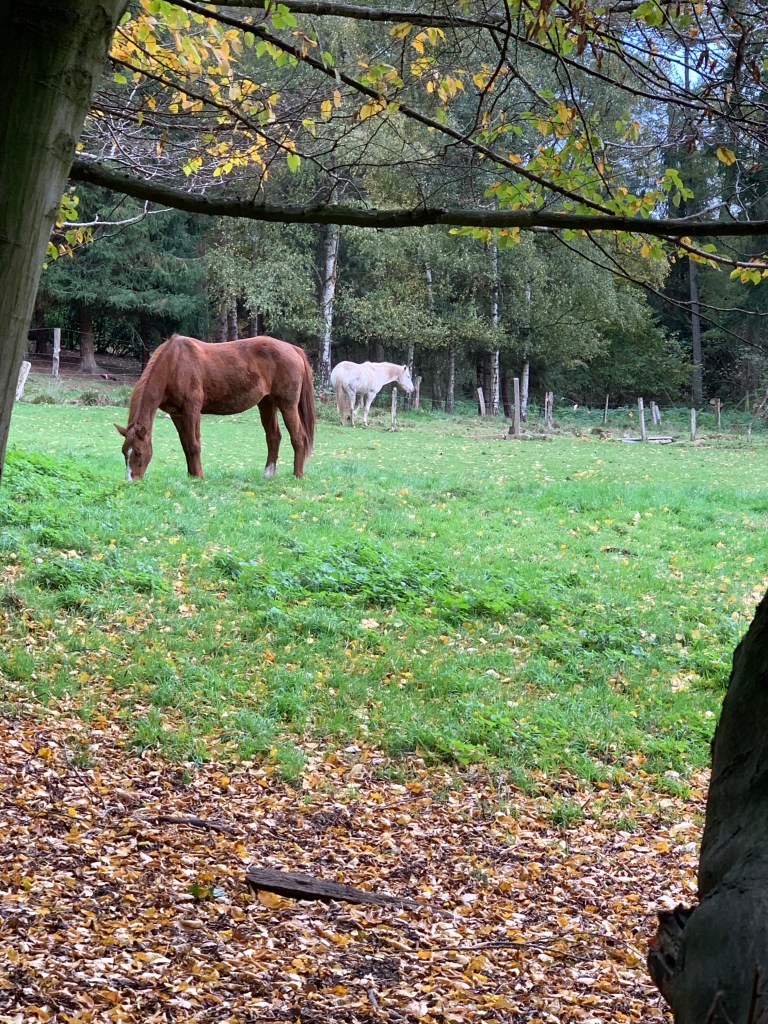 Onder een grijze hemel vatten we onze tocht aan en zakken langs het bospad naast de Koekoek af richting Asbeek.