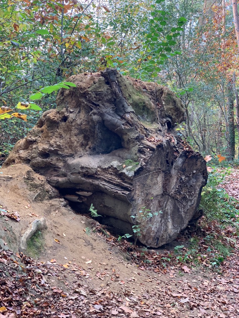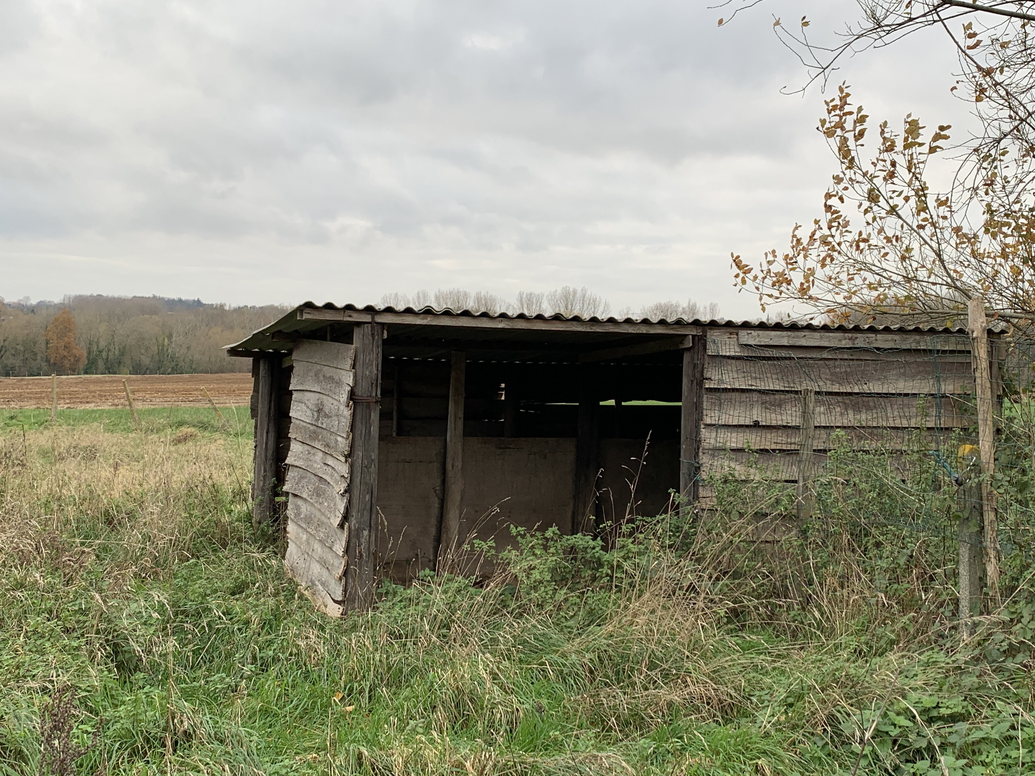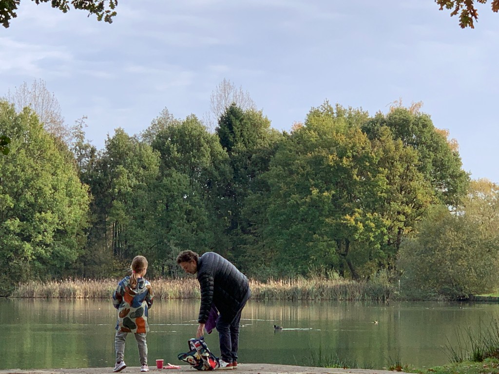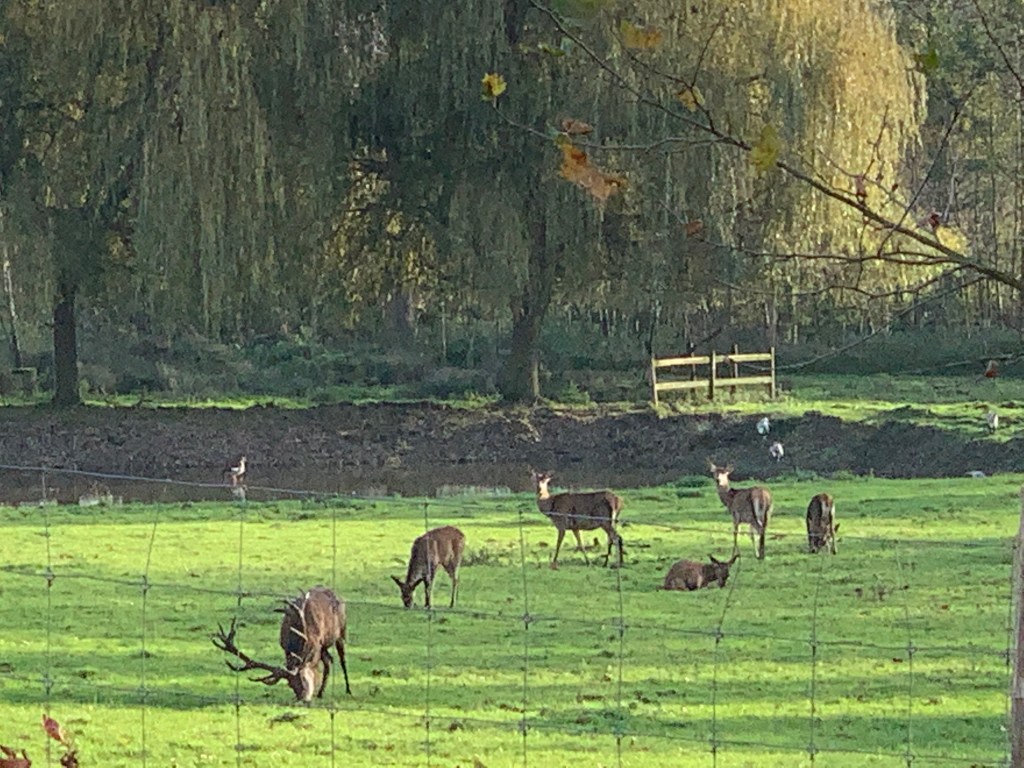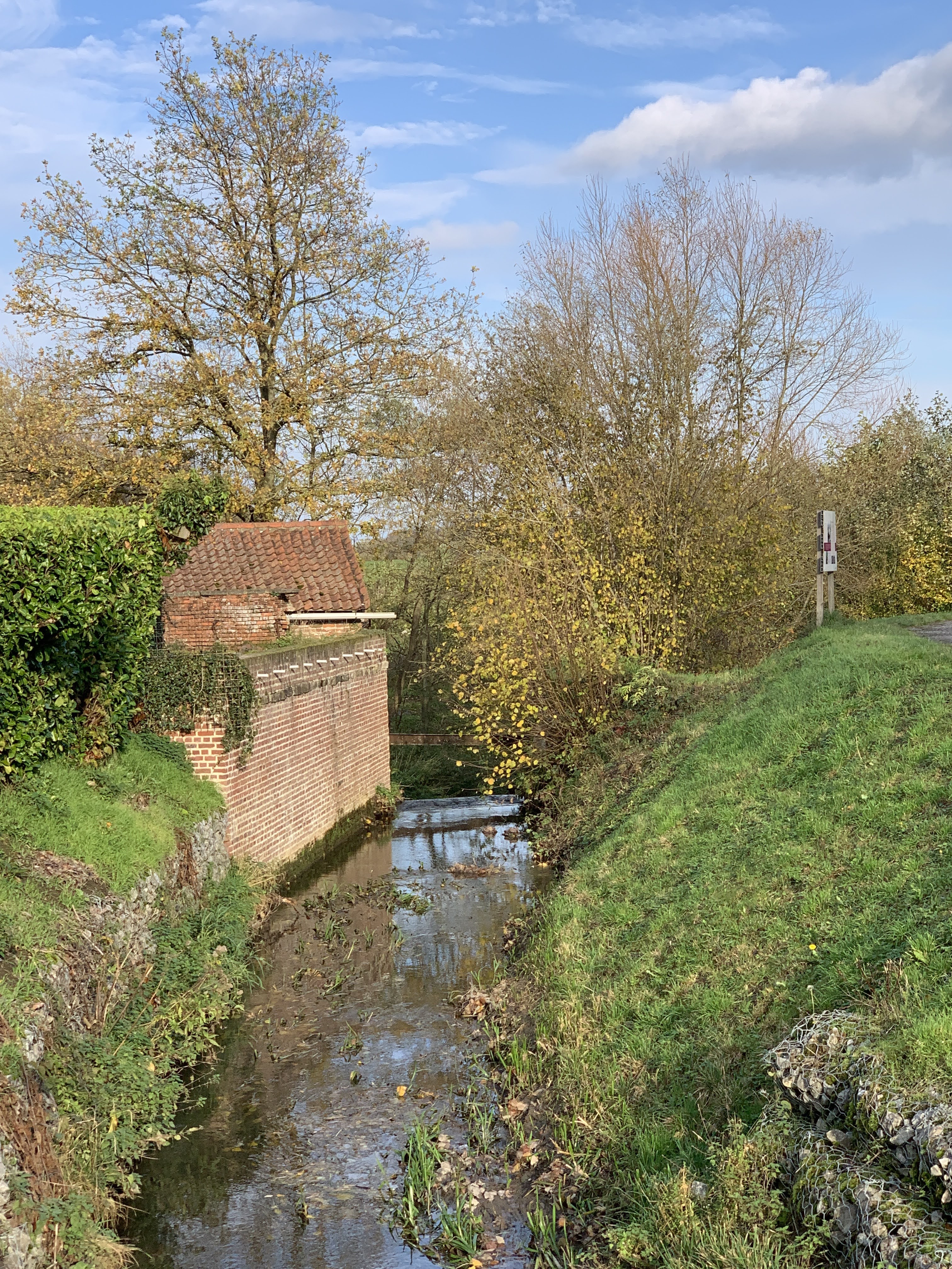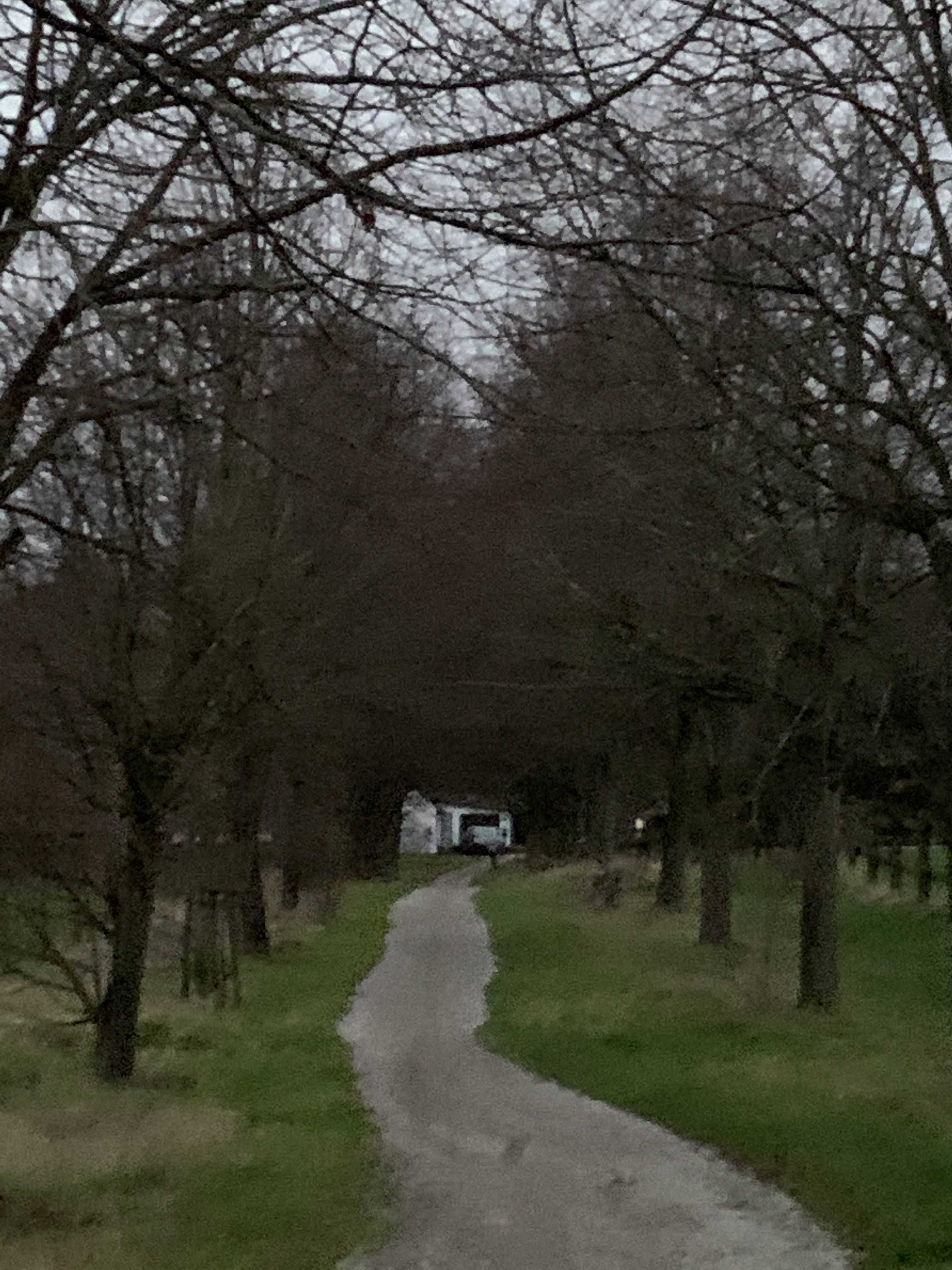 Onder een grijze hemel vatten we onze tocht aan en zakken langs het bospad naast de Koekoek af richting Asbeek.