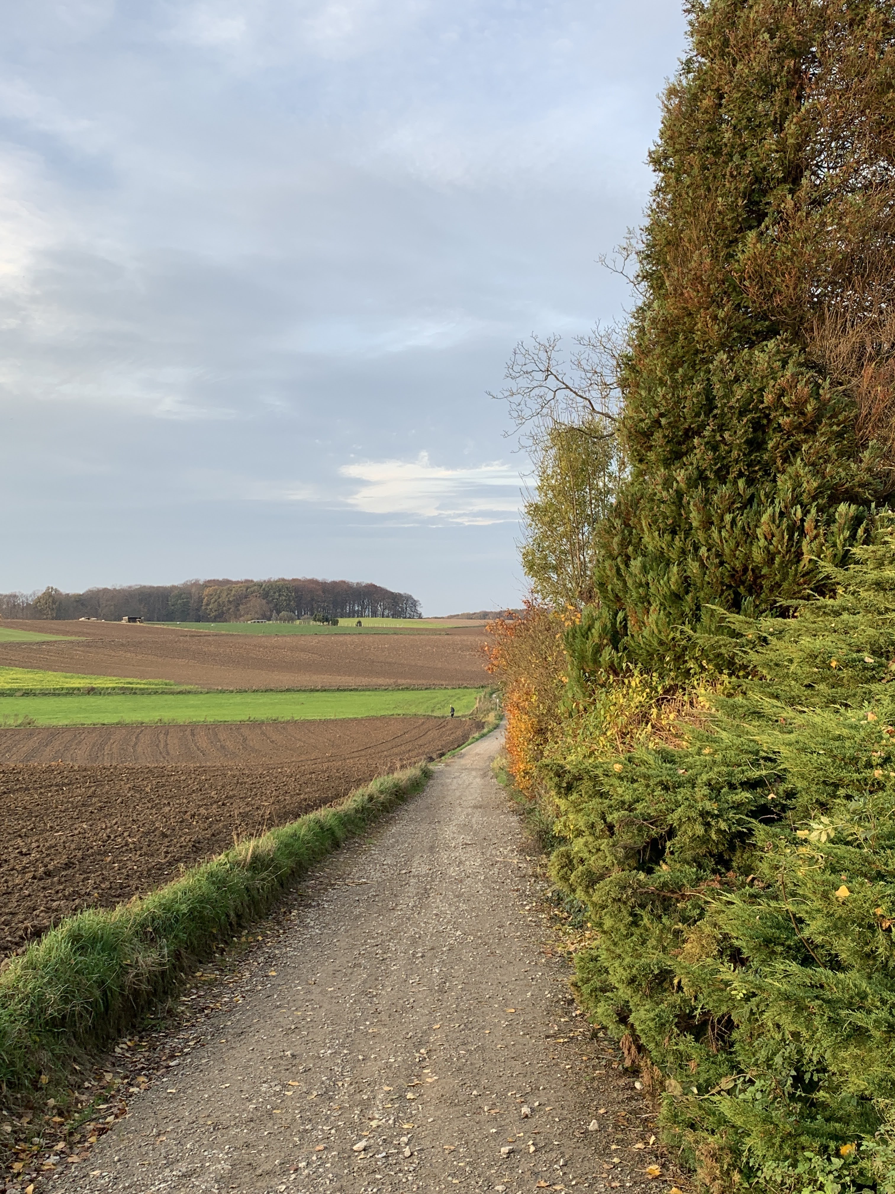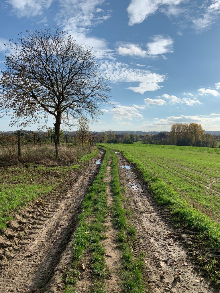 Nog eventjes door de buitenwijken maar al snel zijn we terug tussen de glooiende velden. Opnieuw is het genieten geblazen van deze prachtige omgeving.