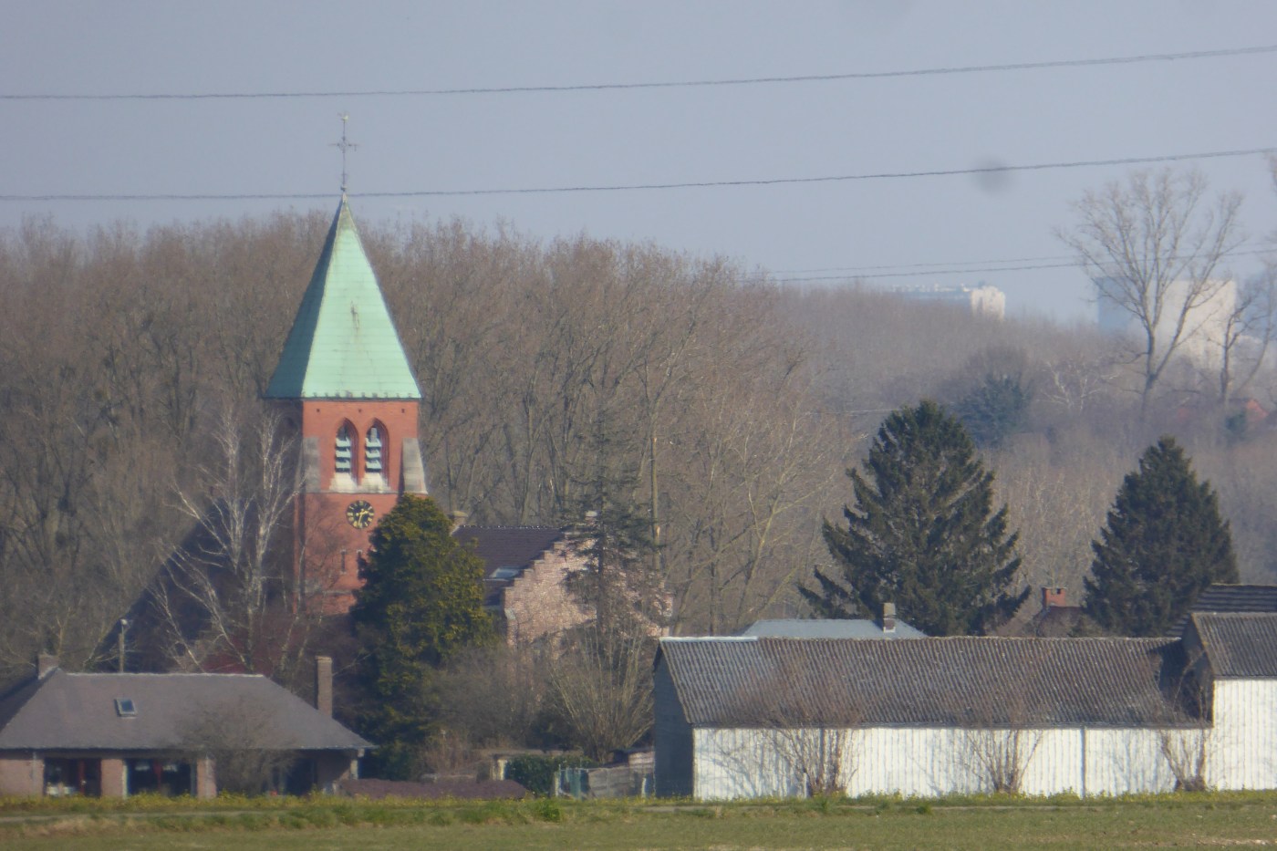 Opnieuw stappen we door velden en worden beloond met mooie vergezichten. Elingen is qua dorpskern wat groter.