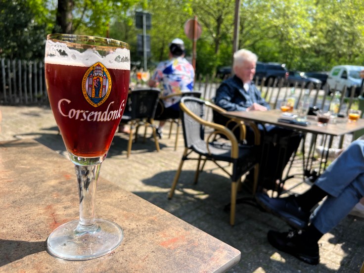 Even buiten het natuurdomein is er een mooie taverne met een leuk terras. Daar genieten we van iets lekker bij een dorstlessend kriekbier.