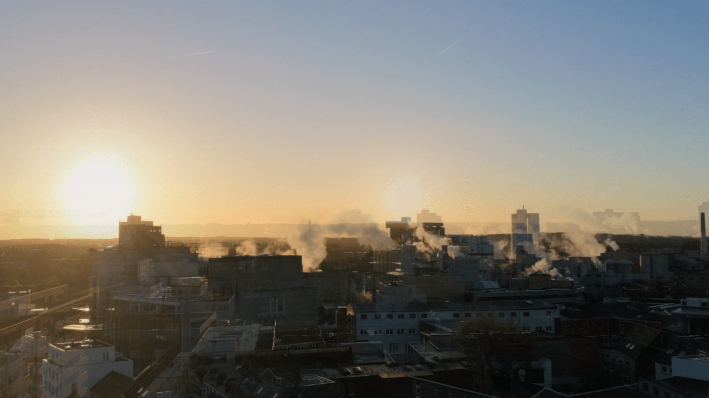 Van de iconische rookpluimen van de Tereos-fabriek (het oude Amylum) tot de imposante stellingen rond de Sint-Jozefskerk: Aalst ziet er van bovenaf prachtig uit bij zonsopgang. Het was een uitdagende vlucht door de smalle straten en over de pleinen, waarbij ik zelfs op het nippertje een fietser moest ontwijken op het Vredesplein! 🚲💨