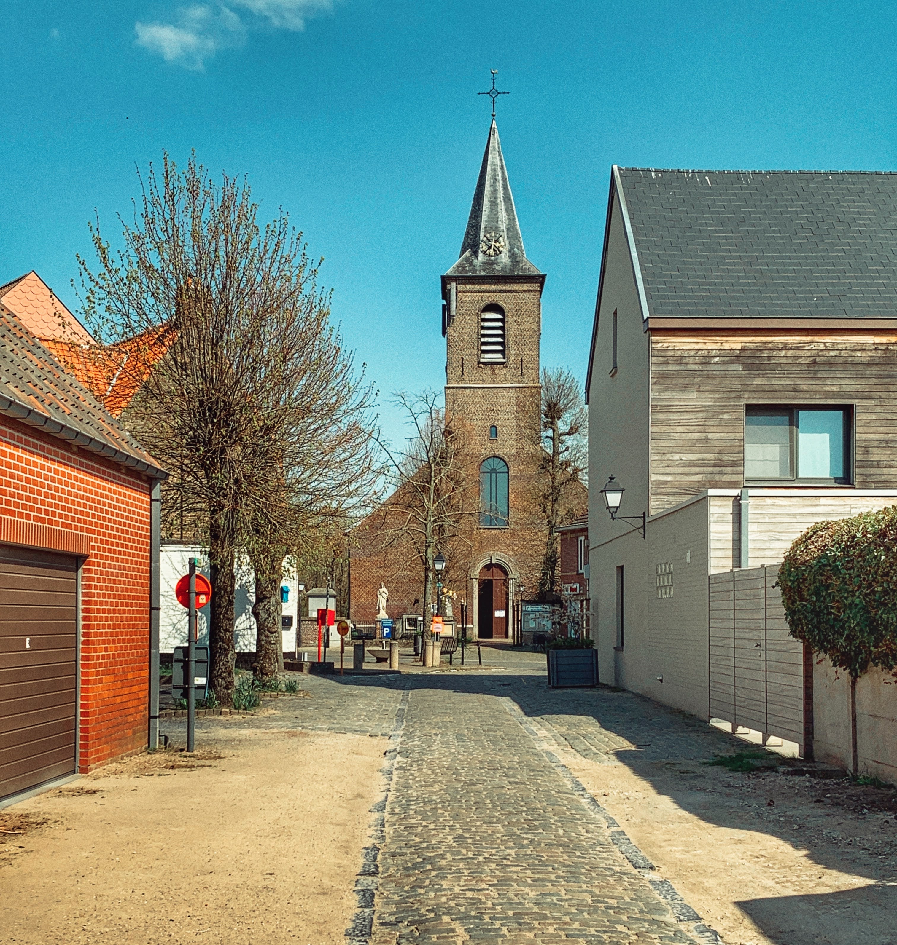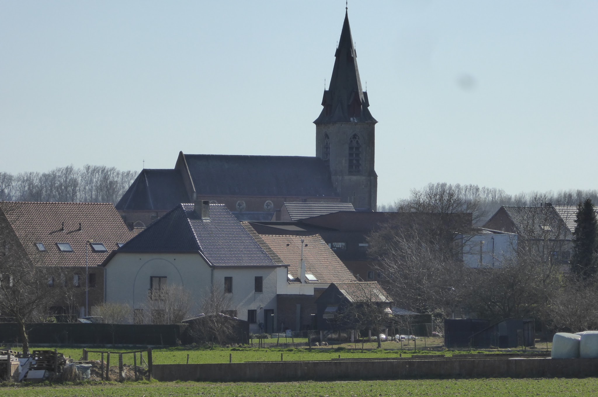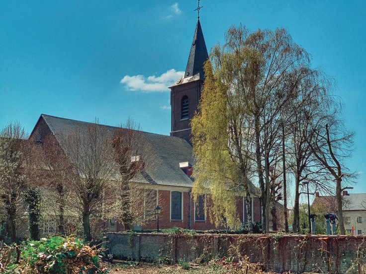 We stappen verder naar het volgend dorpje Sint-Laureins-Berchem al snel doemt de Sint-Laureinskerk op en wandelen we door het centrum van dit klein dorpje.