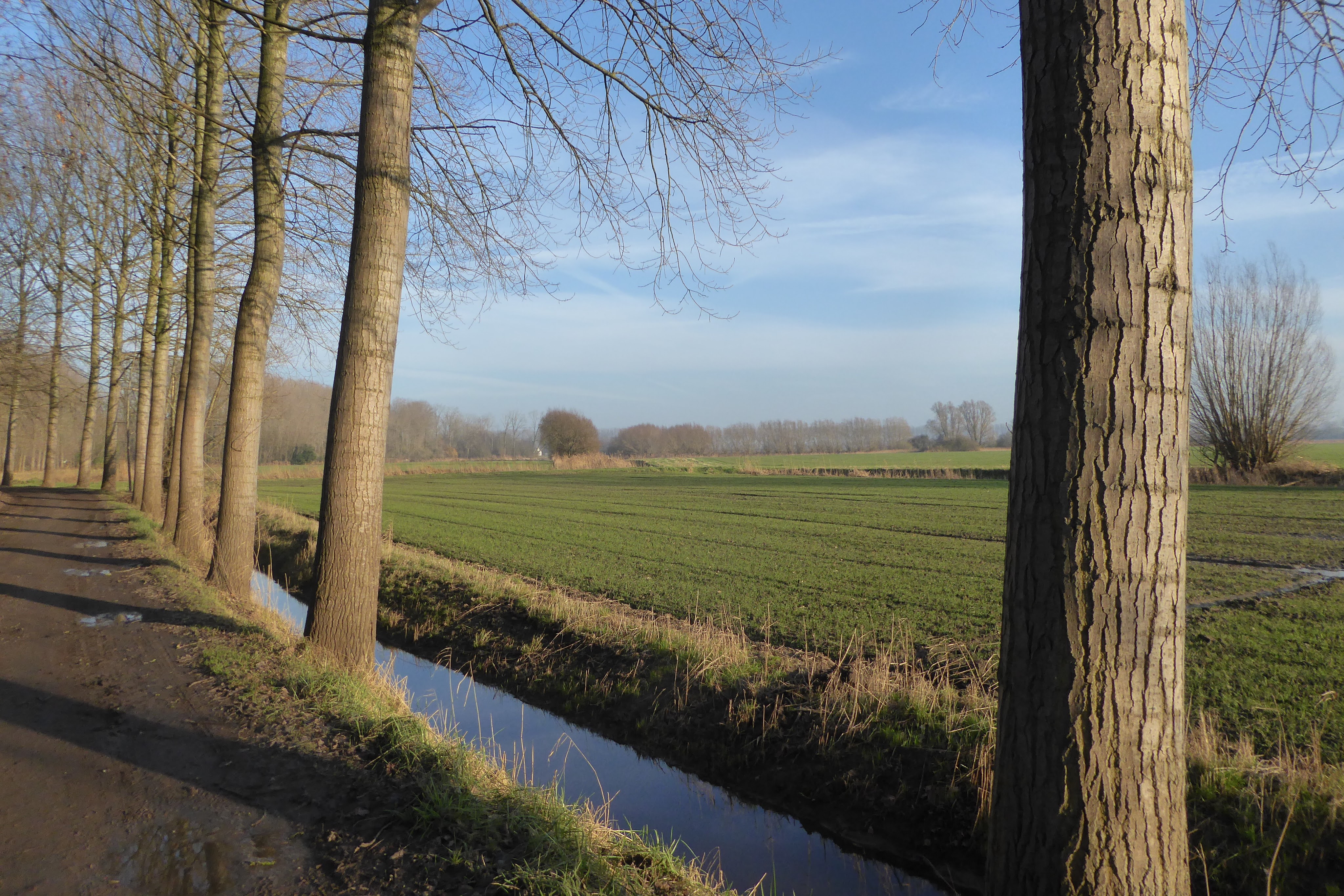 Op een zonnige maar winterse dag zakken we af naar Assenede. Eventjes is het zoeken naar de aanwijzingen met routenummers maar dan wandelen we het centrum van Assenede uit.