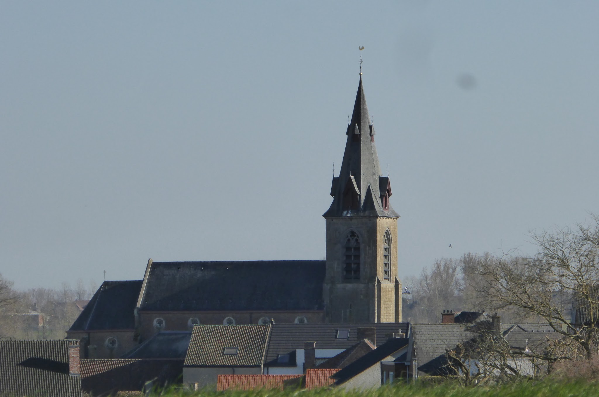 We rijden naar Zevergem Dorp om aldaar de Doornhammeke wandelroute aan te vatten