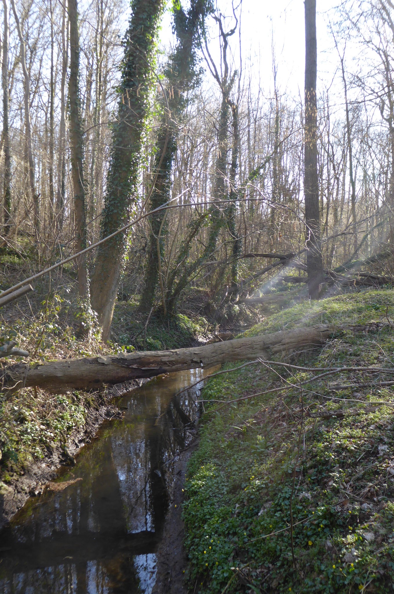 Het is wachten tot begin April alvorens we het Kravaalbos, dat op minder dan een kwartiertje rijden ligt, nog eens opzoeken. Het dichte bos, dat ingebed ligt in de Aalsterse faluintjes, neemt zijn tijd om op te drogen na de winter.