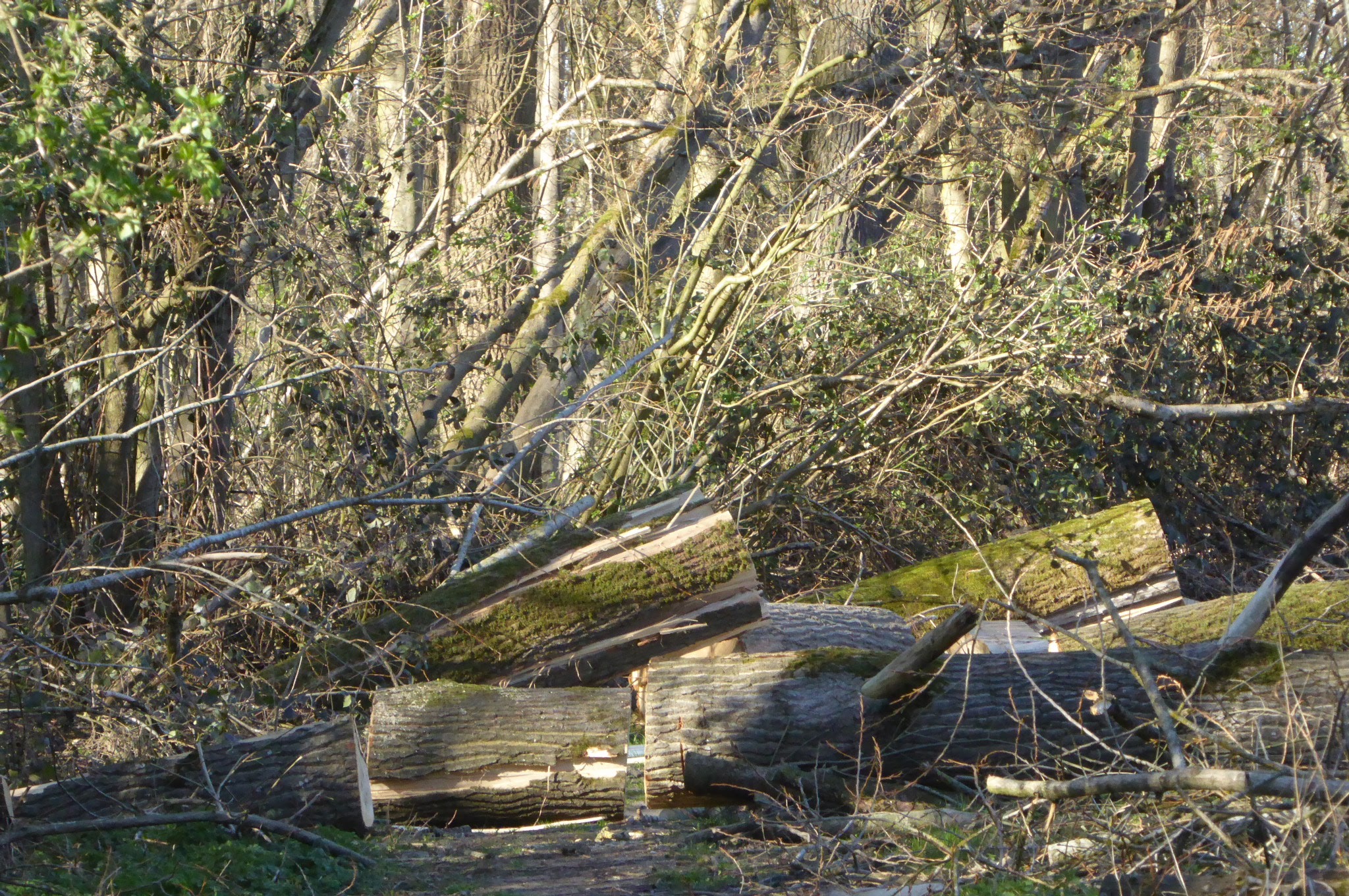 Het Kravaalbos met zijn klimmende en dalende bospaden trakteert ons op mooie beelden van een ontluikende natuur. Ook merken we de lidtekens die de laatste stormen hebben nagelaten.