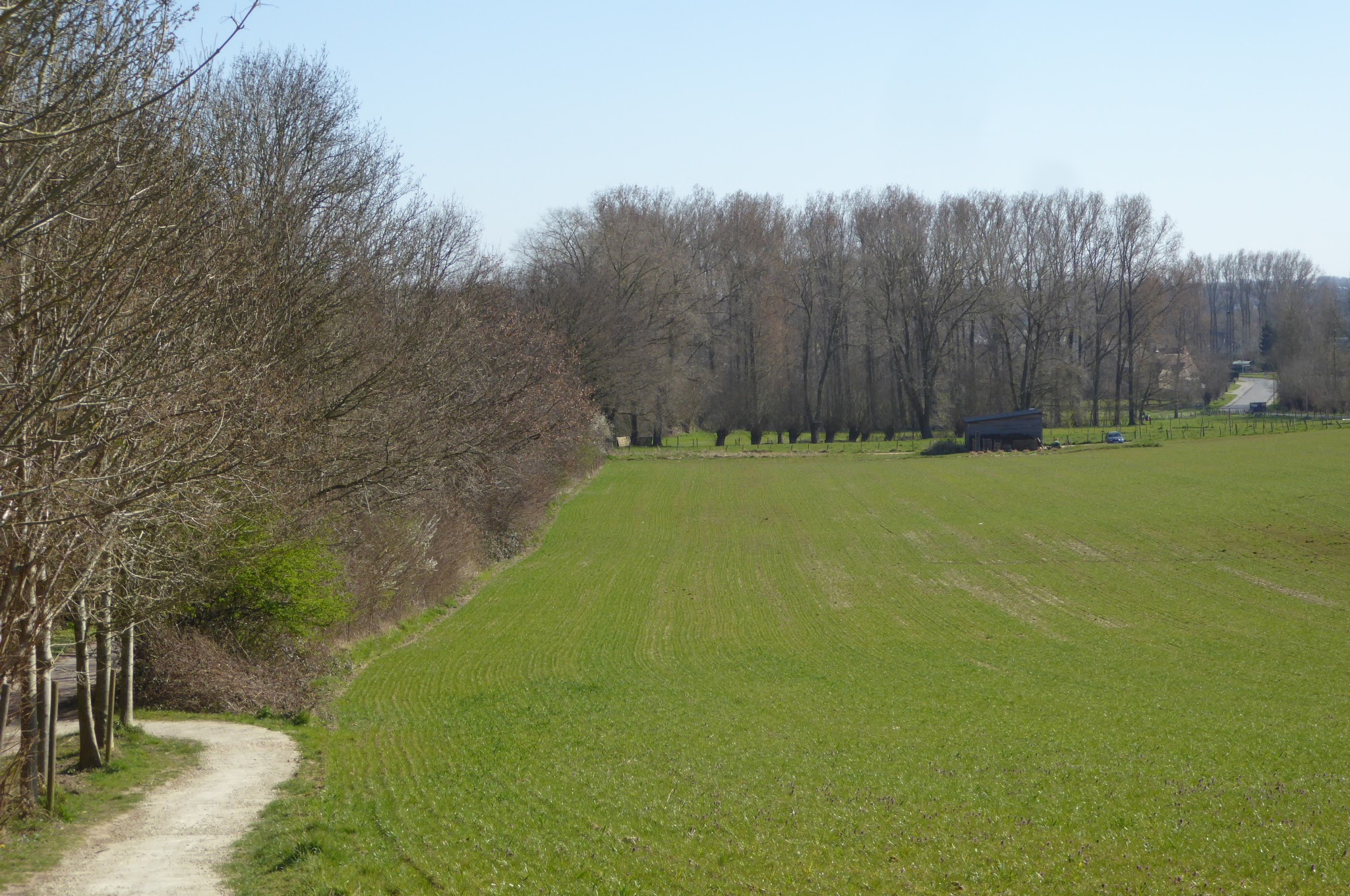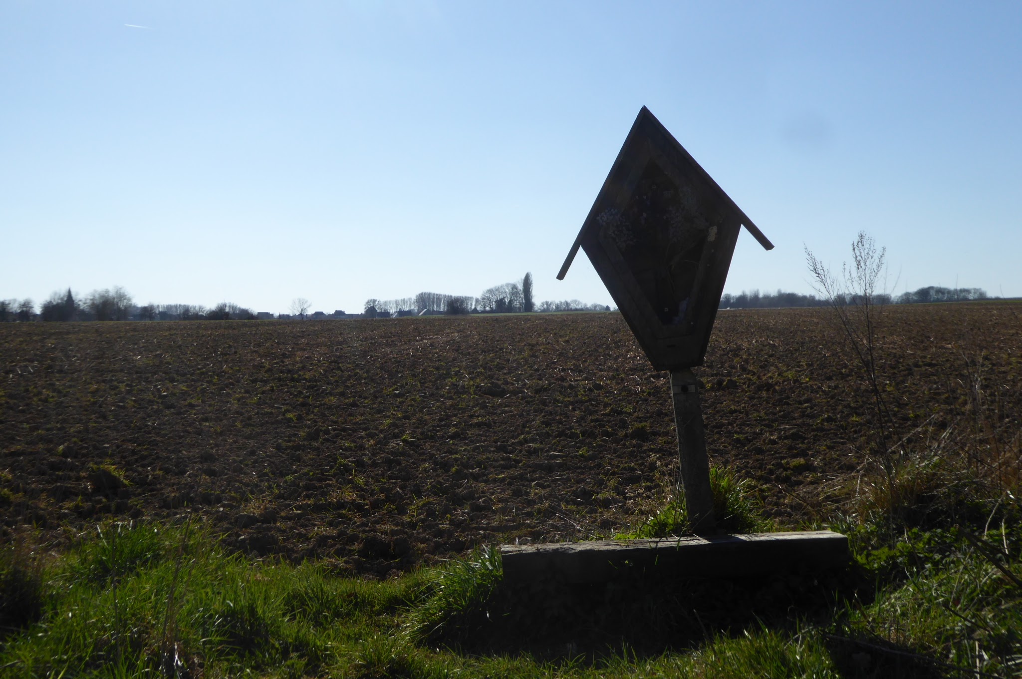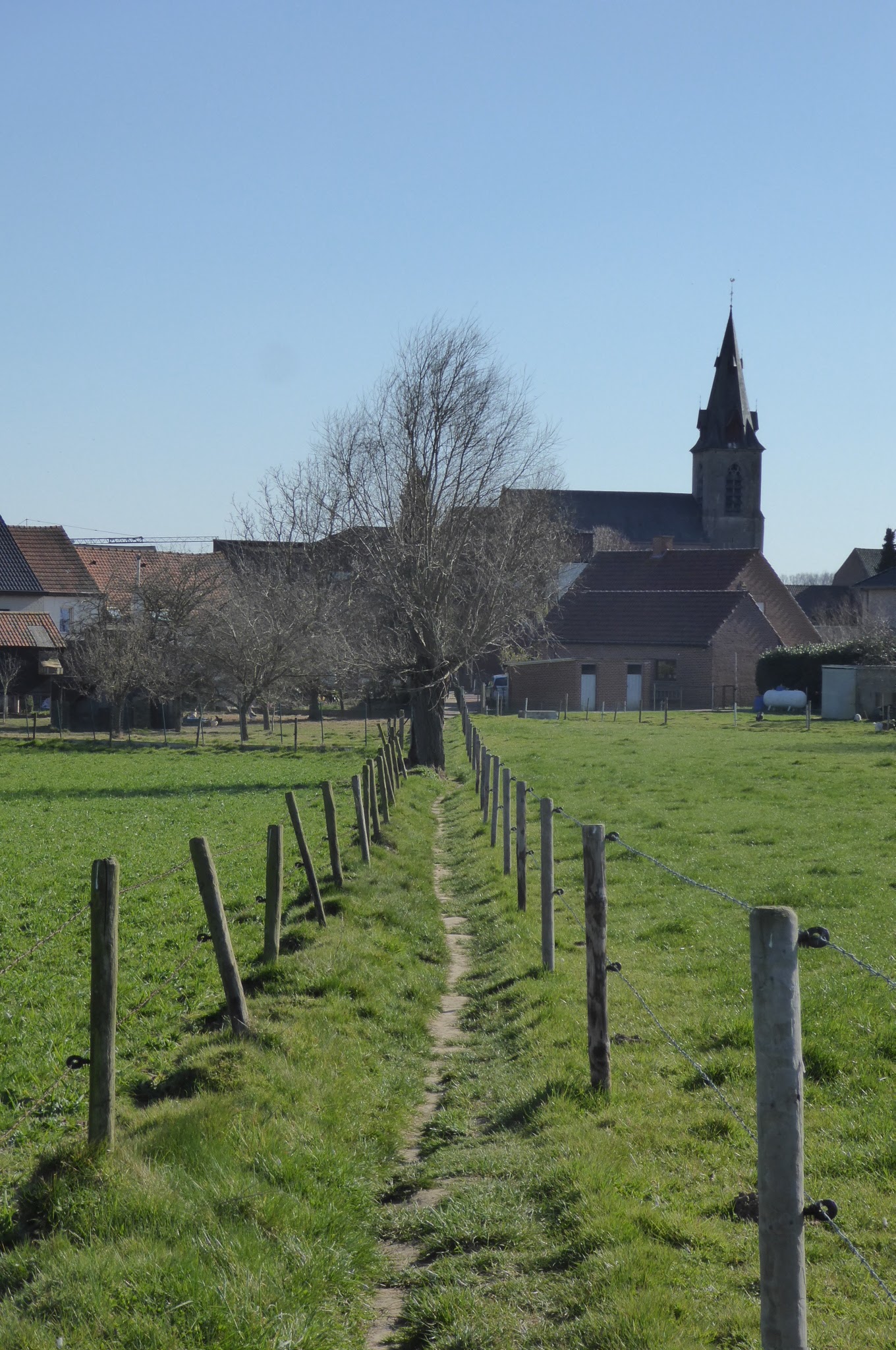 Na de Trambaan keren we terug de velden in richten onze stappen naar Hillegem een deelgemeente van Sint-Lievens-Houtem.