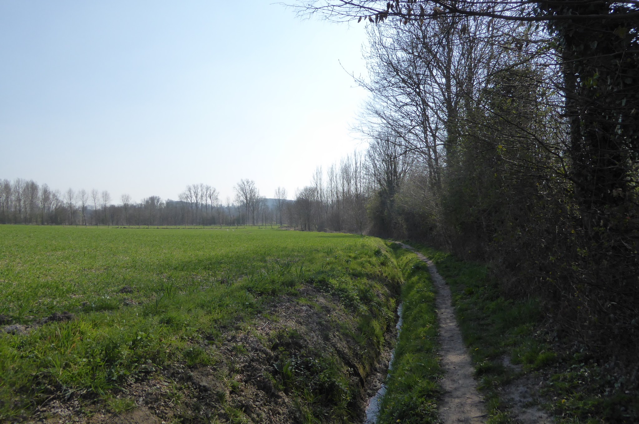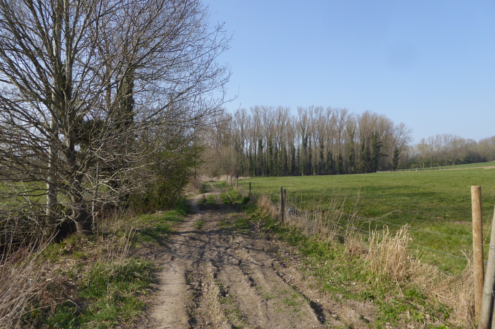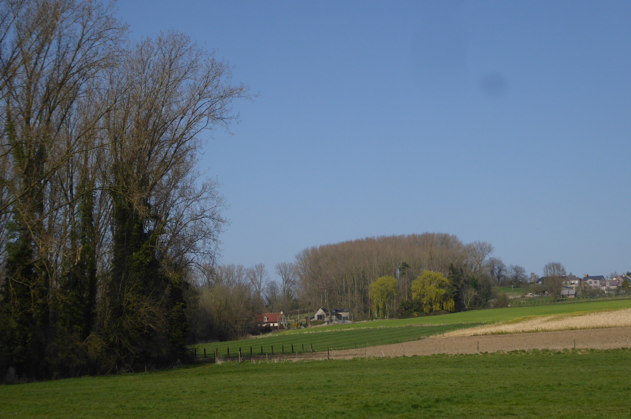 Na de Trambaan keren we terug de velden in richten onze stappen naar Hillegem een deelgemeente van Sint-Lievens-Houtem.