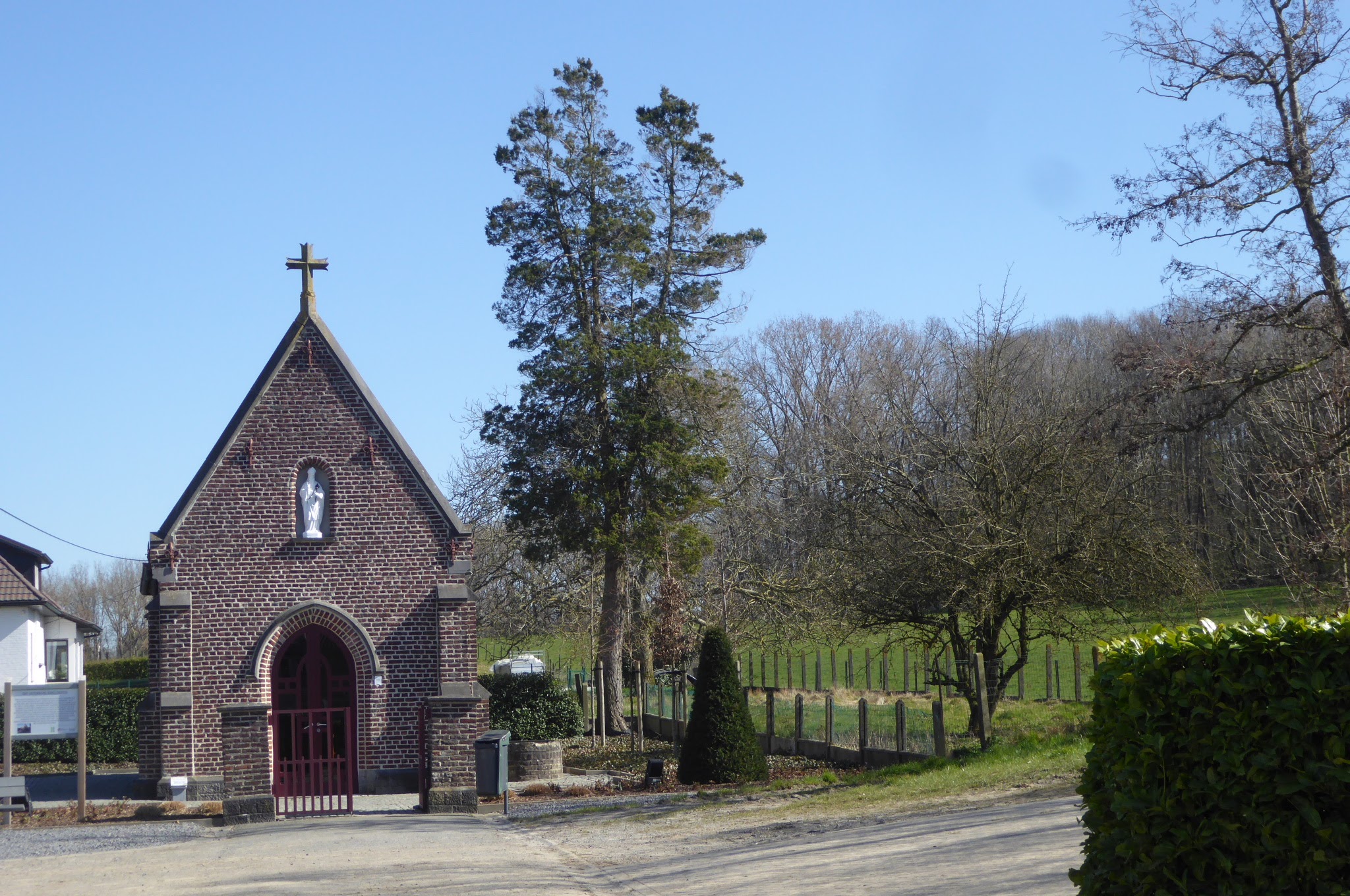 Dus begeven we ons naar Sint-Maria-Oudenhove, deelgemeente van Zottegem, alwaar we op het Sint-Hubertusplein de “Op en rond de Berendrieswandeling” starten.