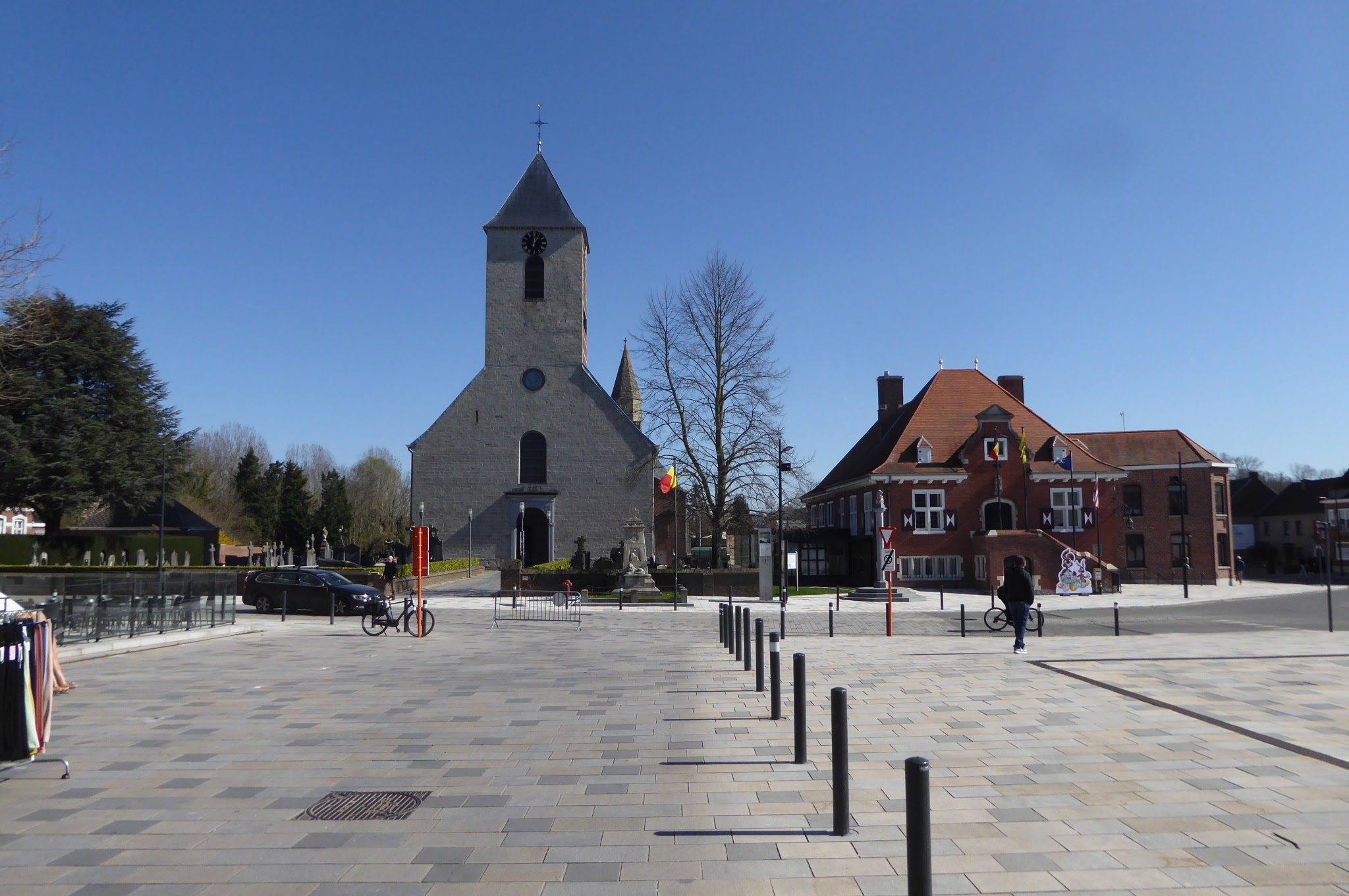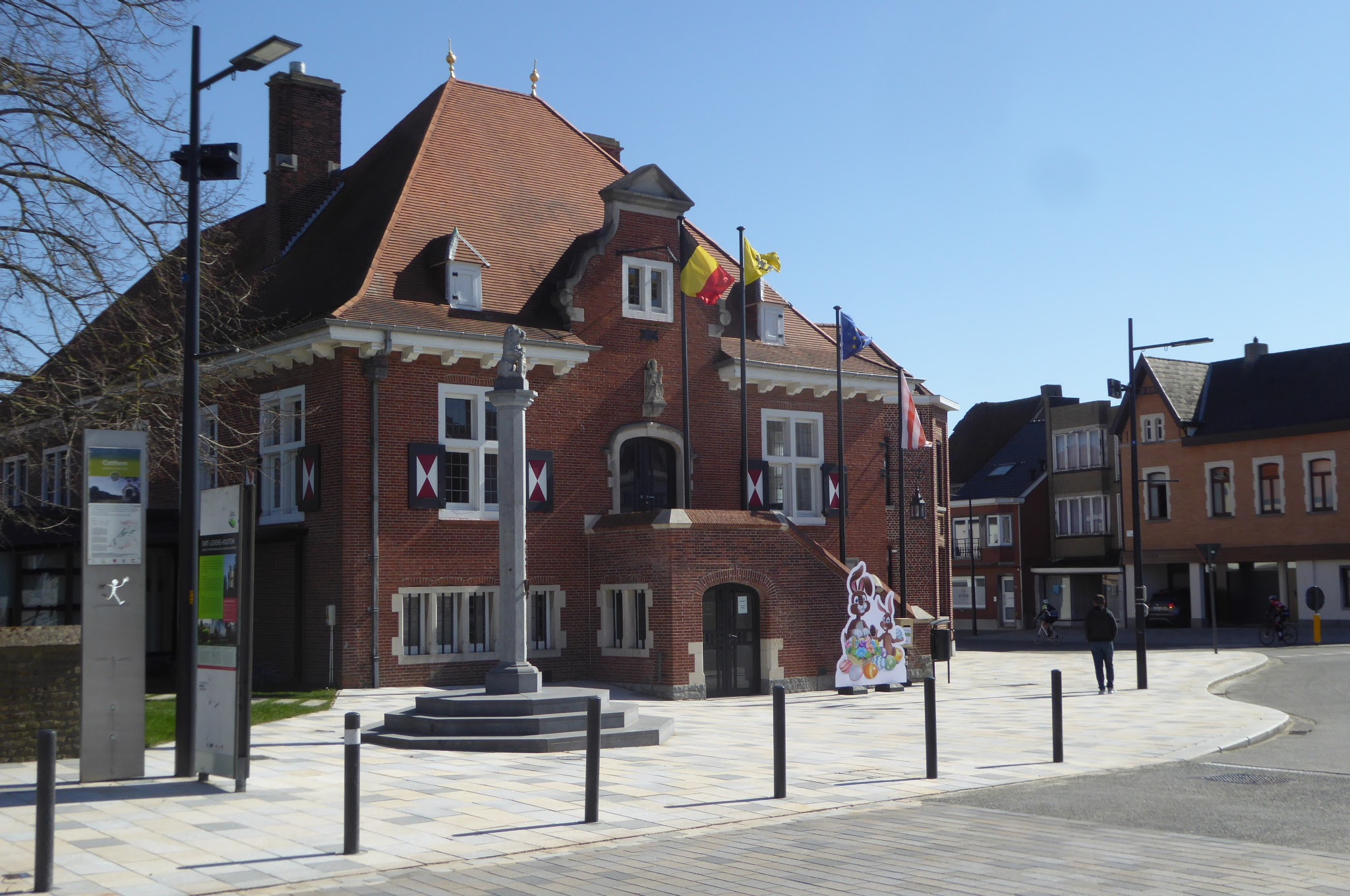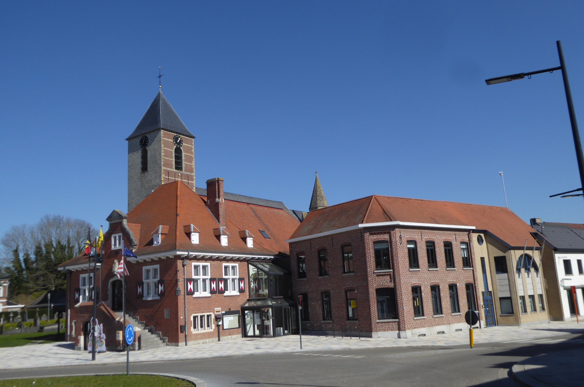 We slenteren even over de markt en blijven even hangen bij de Sint-Michielskerk en het juist ernaast gelegen gemeentehuis. Daarna wandelen we het centrum uit.