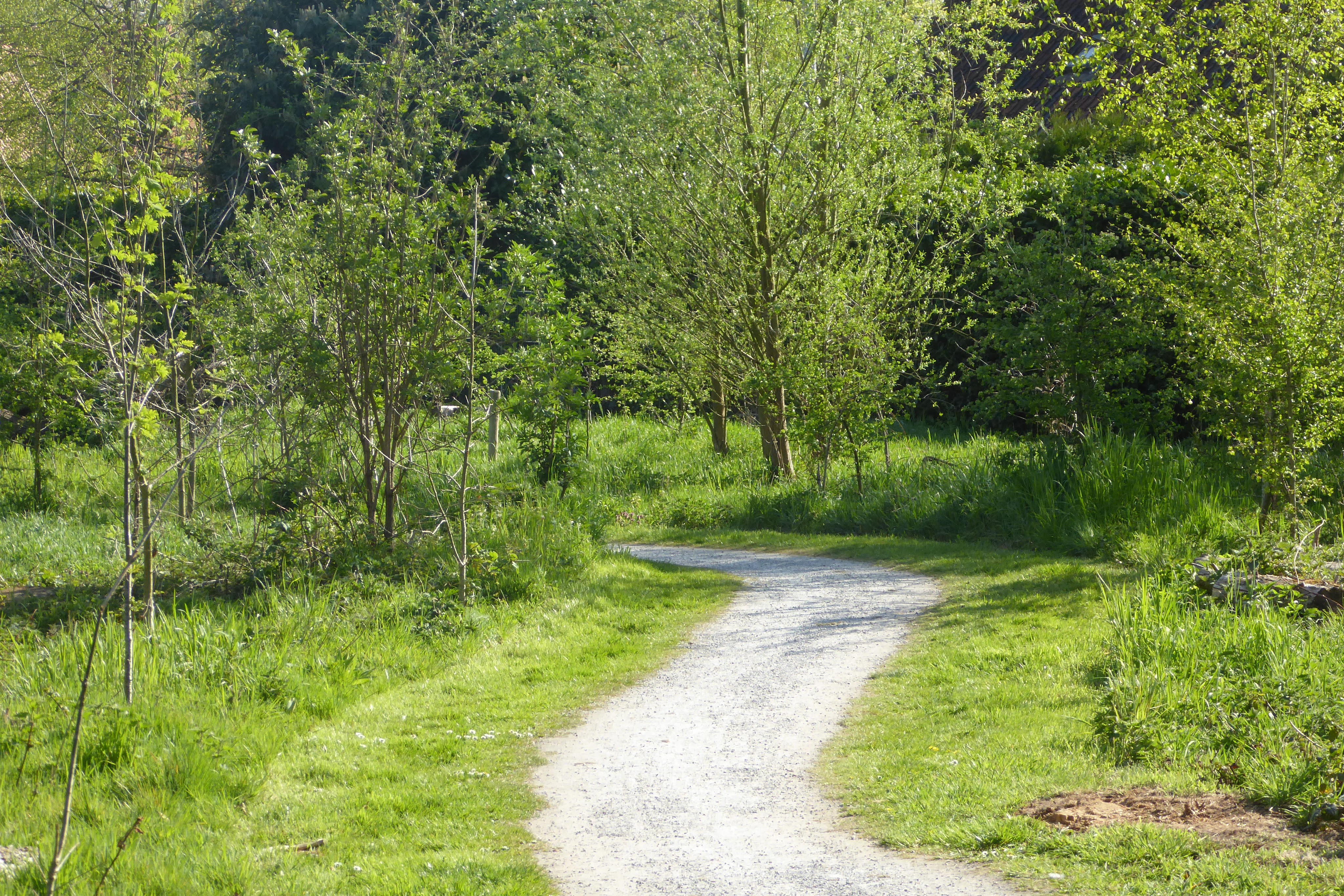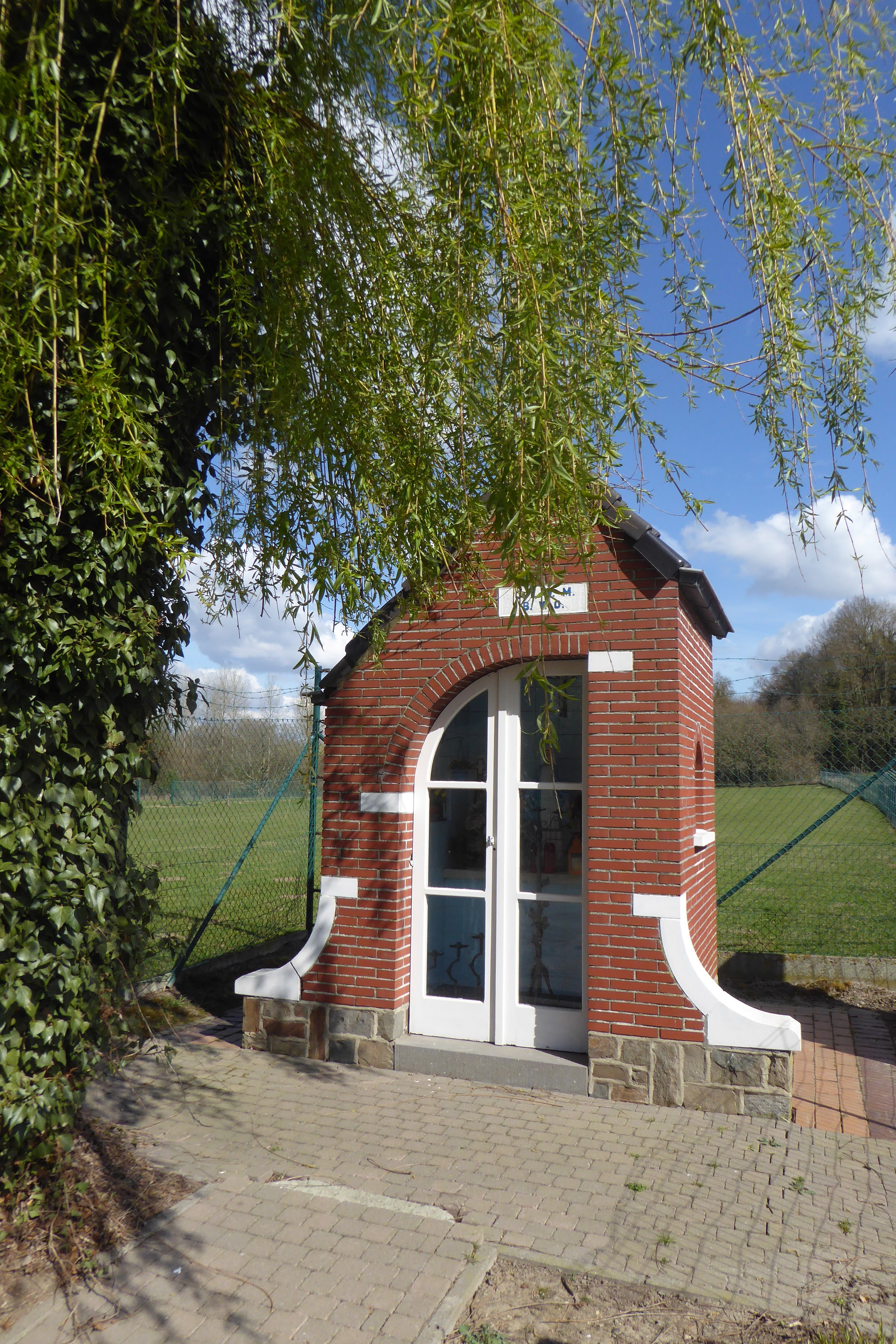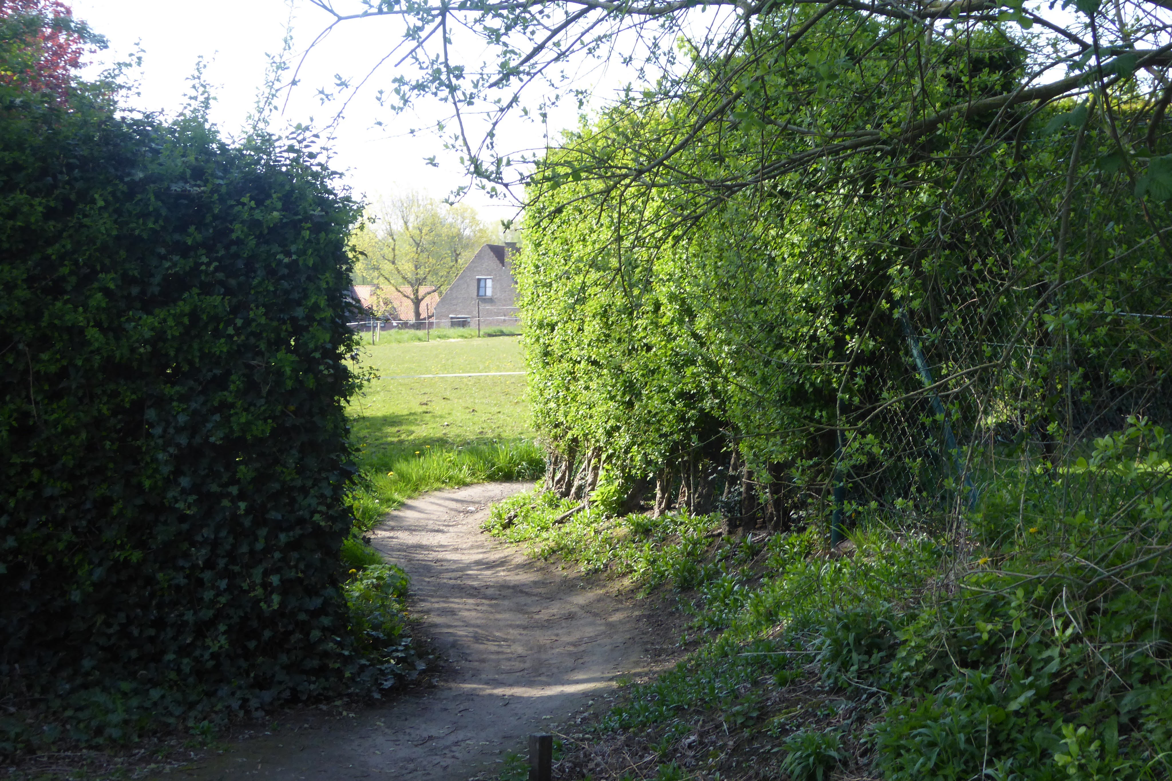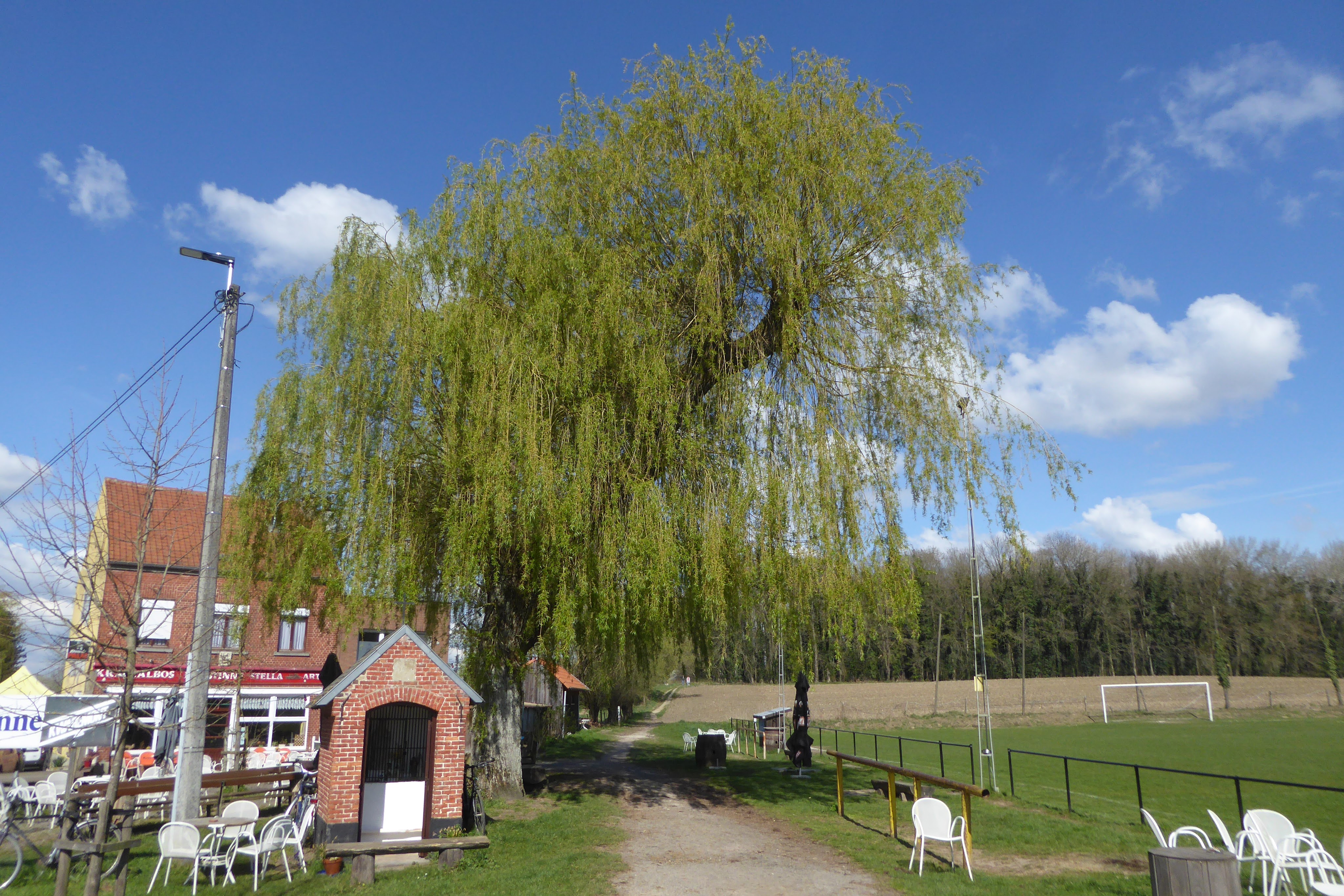 Na even in het park voor de Sint-Rochuskerk te verwijlen verlaten we de dorpskern langs de Lia-tuin.