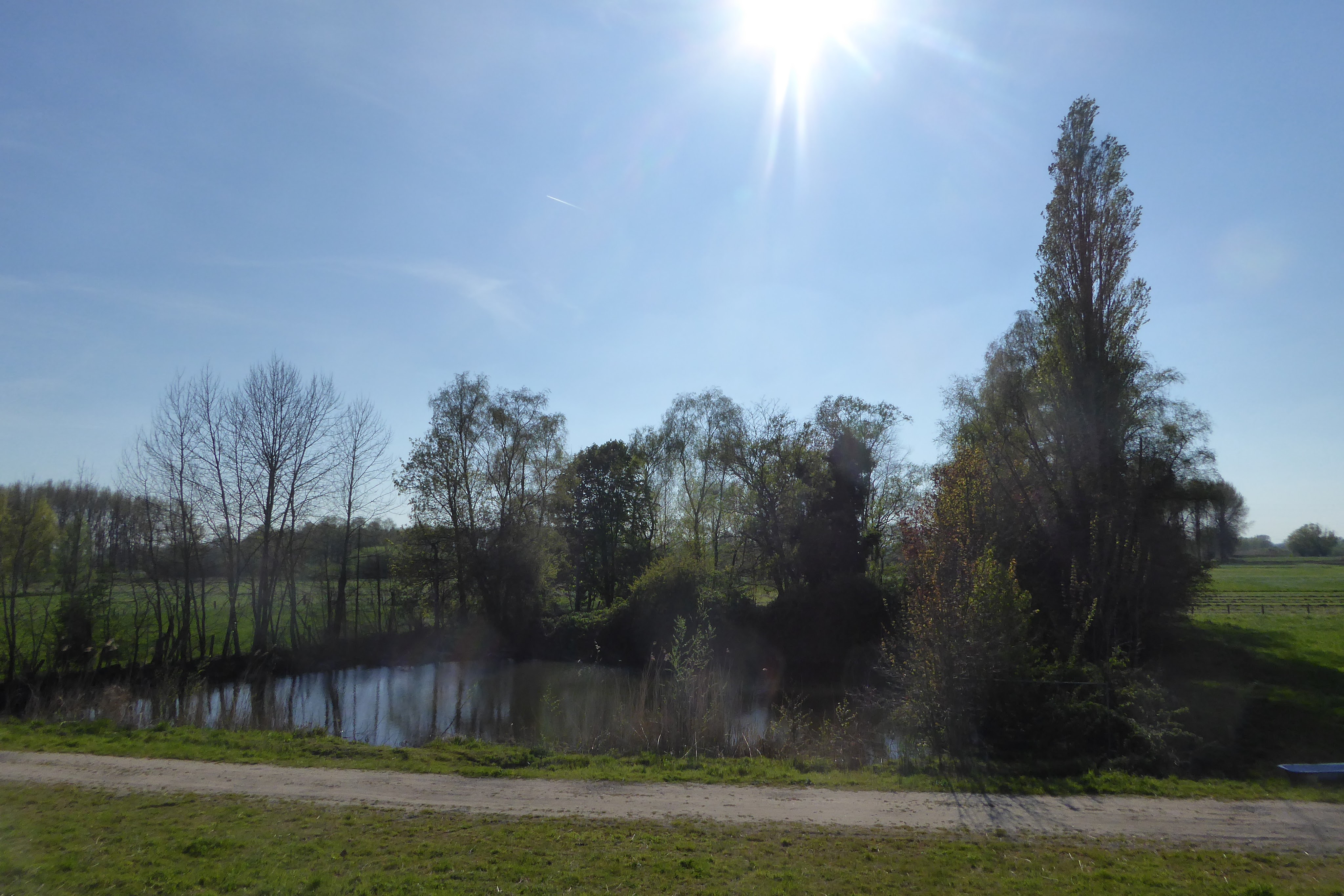 Eventjes genieten we van het spotten van een witte lepelaar. Daarna zijn we snel terug aan de Mirabrug. Daar nemen we snel de auto en rijden naar de Durmebrug om aldaar de 2de lus van de Sombeke – Oude Durme wandelroute te starten.