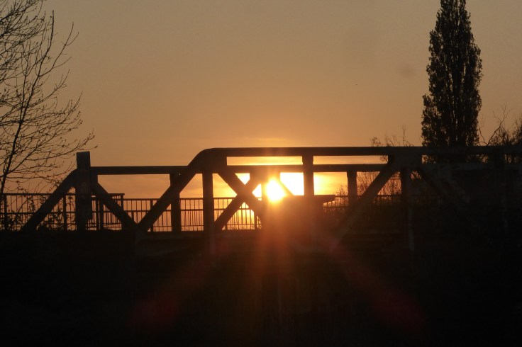Daarna bereiken we door het fantastisch mooi natuurgebied en onder de schemering van de ondergaande zon de Durmebrug. Meteen het einde van deze mooie wandeltocht.