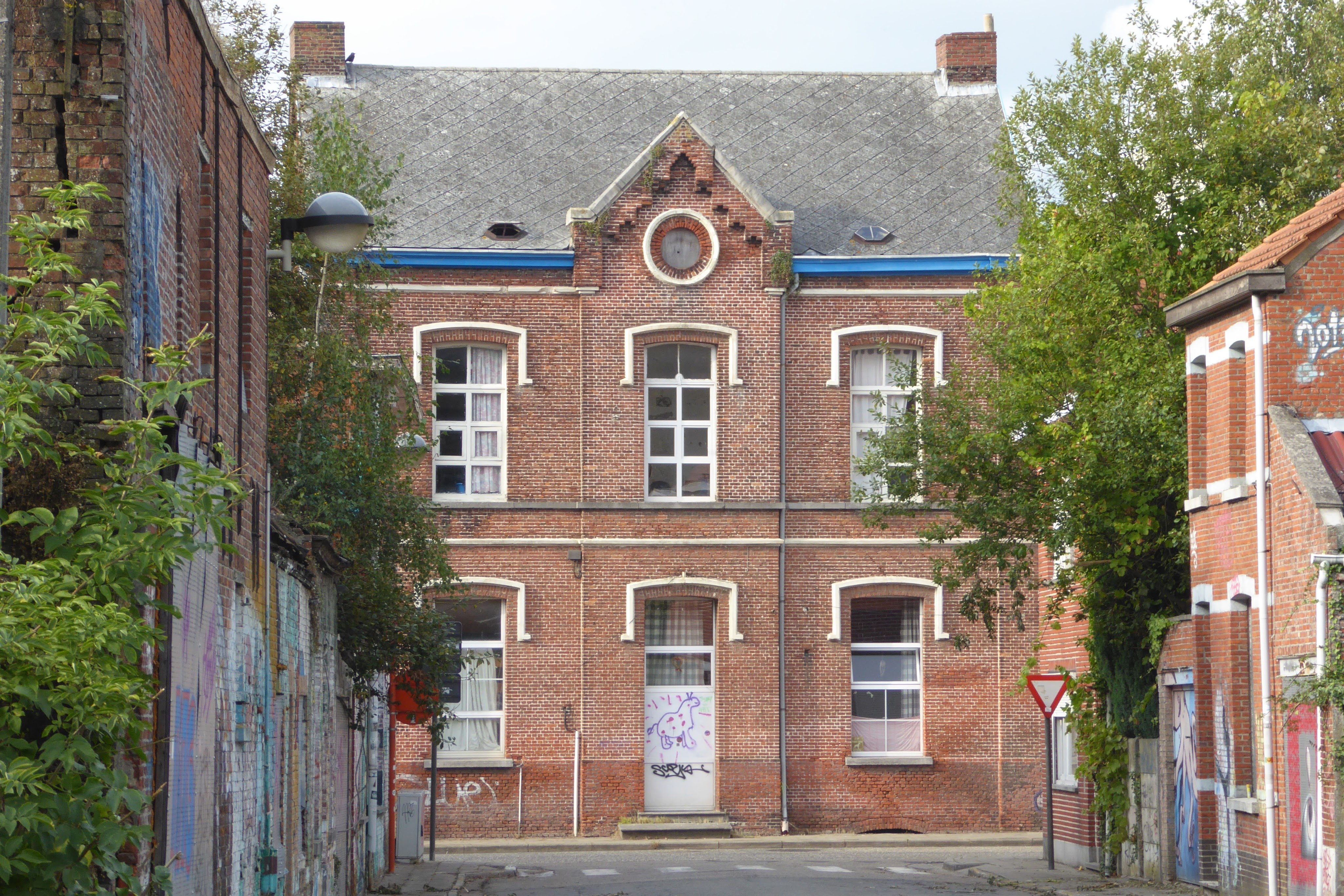 We volgen de koperen klinknagels die in het voetpad de route aanwijzen.Nog steeds in de Sint-Rochuswijk treffen we het prestigieuze neobarok gebouw dat eerst als school diende en sinds 2011 dienstdoet als bibliotheek. Het werdt gebouwd in 1883.