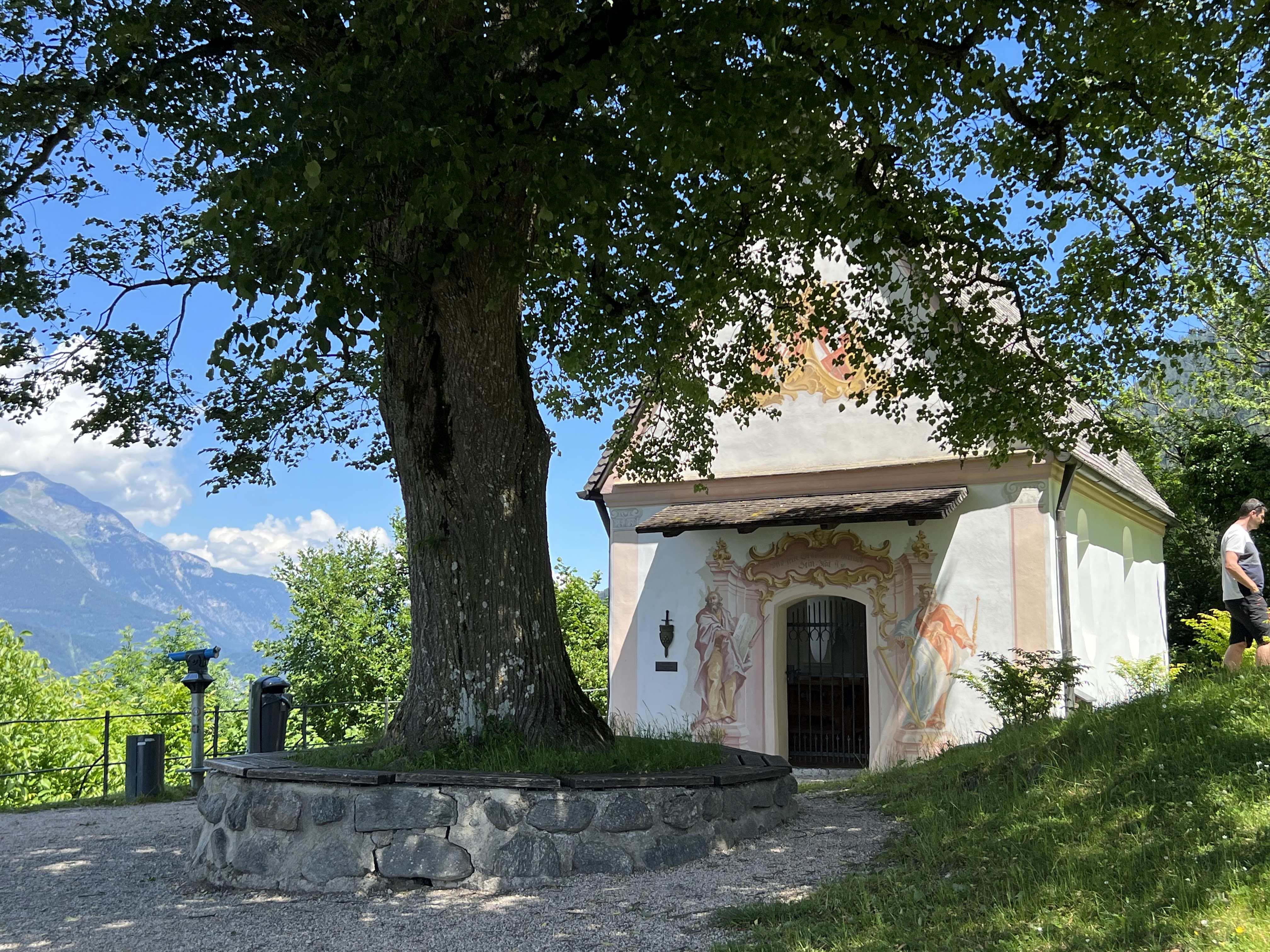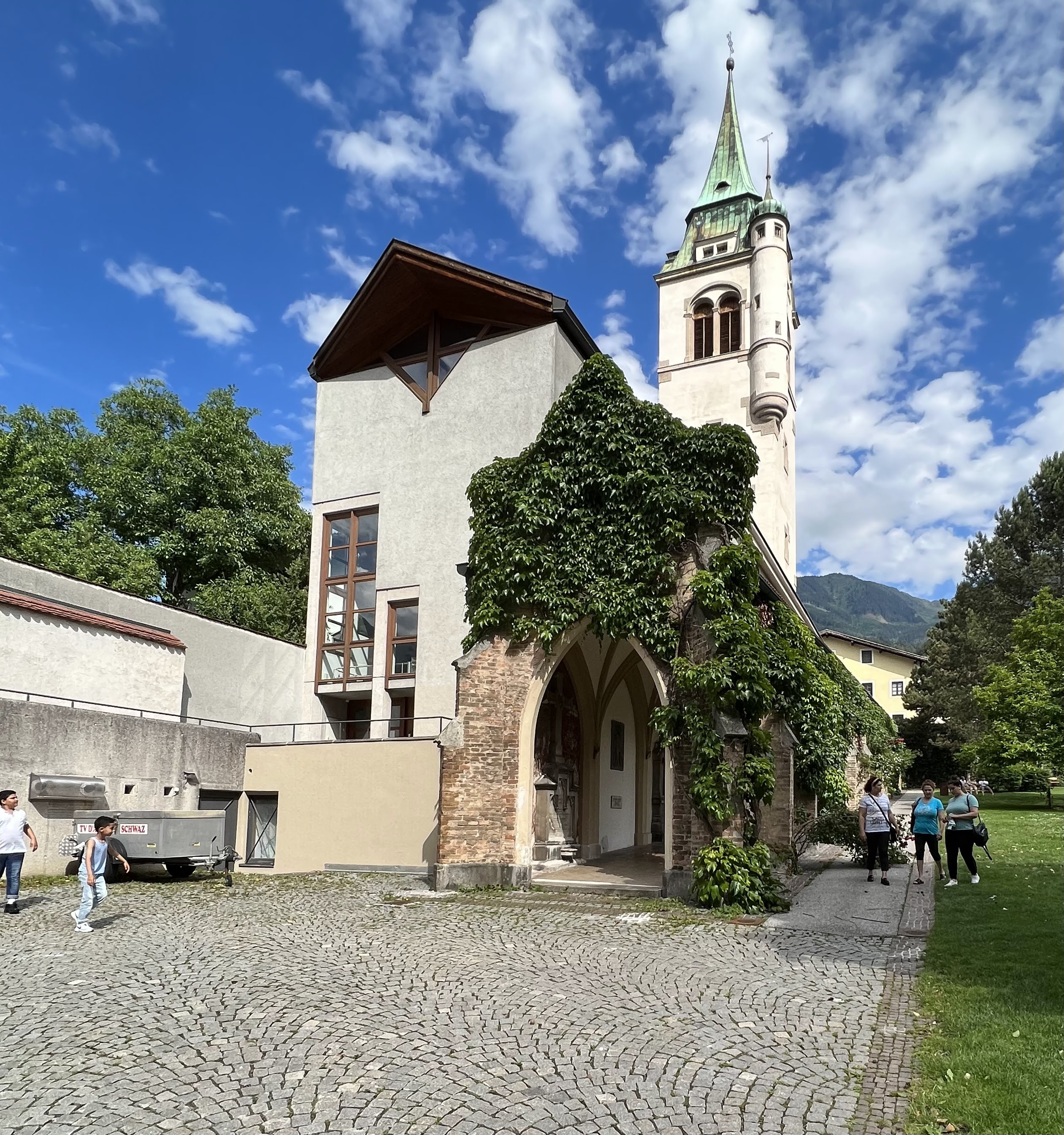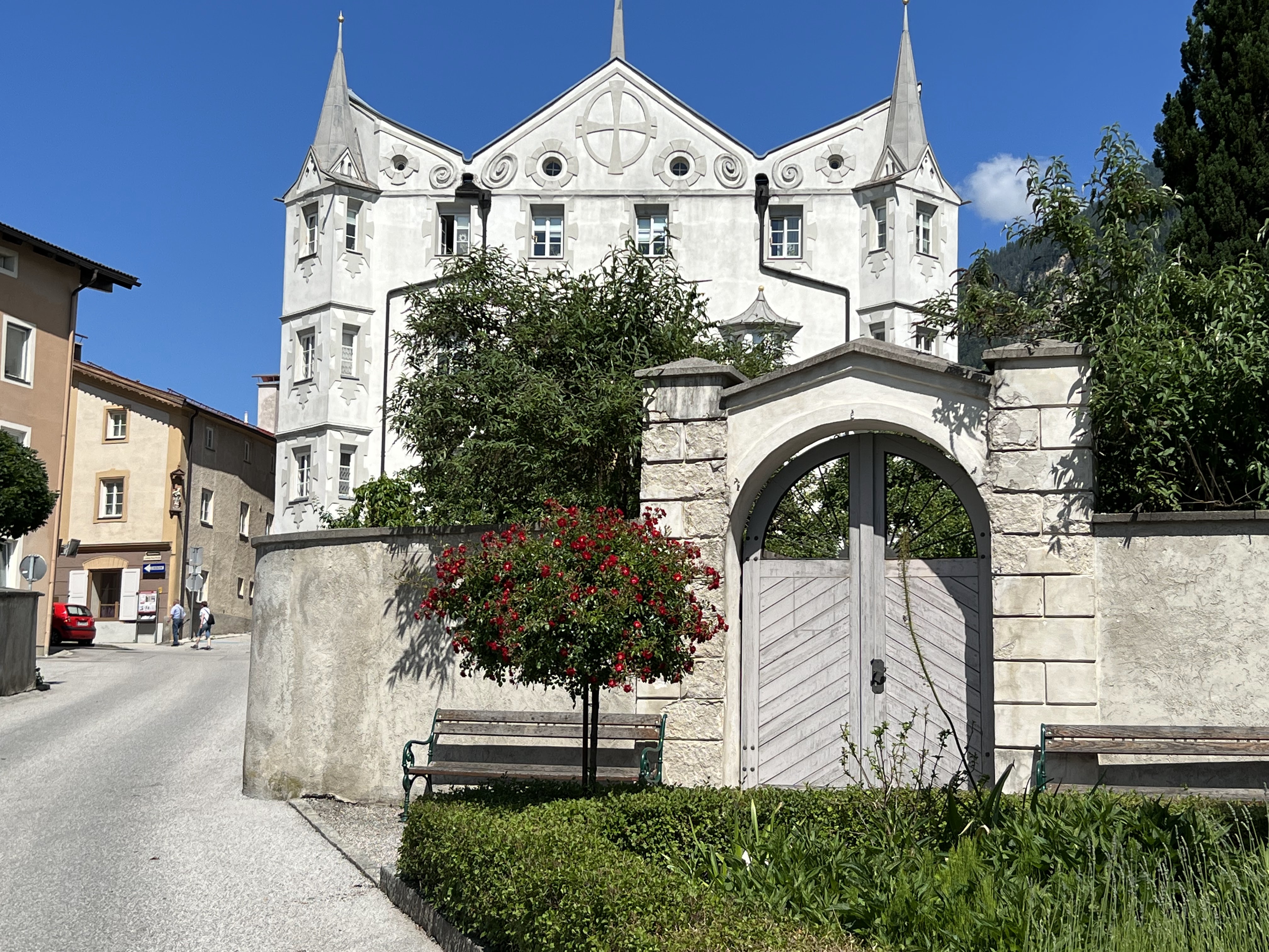Daarna richten we onze schreden naar Burg Freundsberg. Deze burcht/Donjon torent boven het zilverstadje Schwaz uit en heeft een haast mythische aantrekkingskracht. Na een stevige klim door de buitenwijken van Schwaz bereiken we de hoge grote Donjon geflankeerd door de witte burchtkapel.
