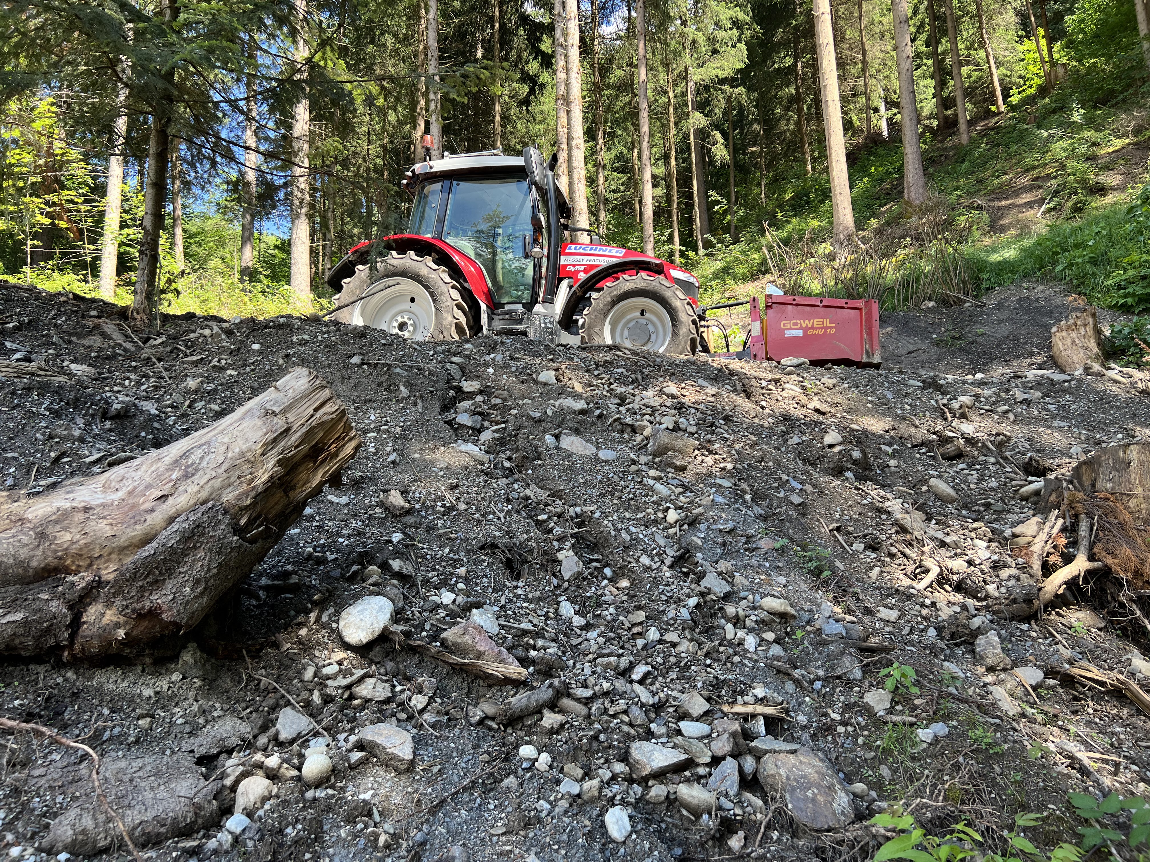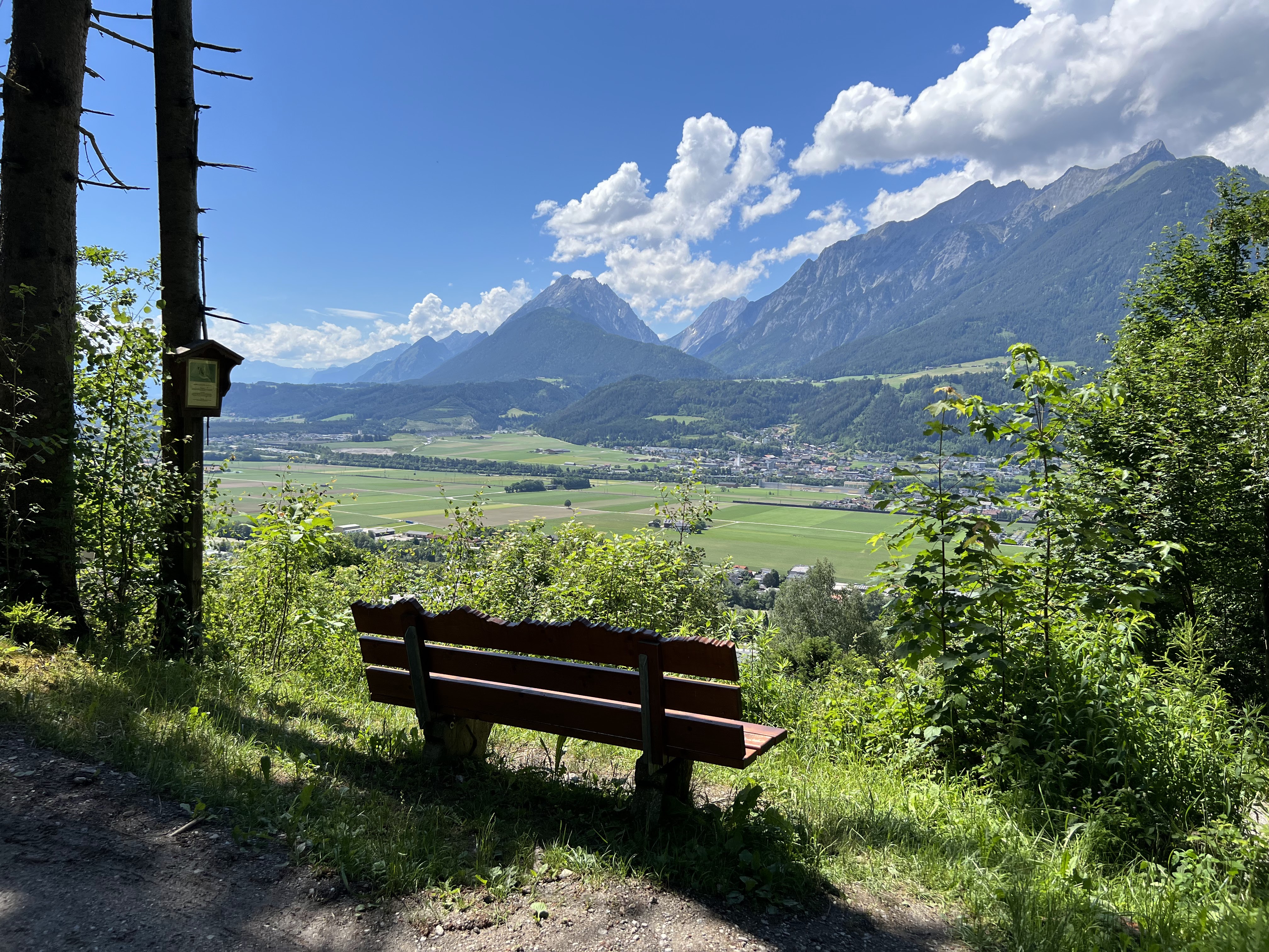 Daarna wandelen we verder en dalen de Freundsberg af langs de boskant. Na een tijdje bereiken we opnieuw de buitenwijken van Schwaz.