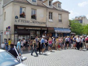 Verbluffend, na wat we gezien hebben in het Le Louvre is het haast ongelooflijk dat men hier nog zo’n keur van kunstwerken bij elkaar heeft gekregen, wat een weelde. Hierna stappen we richting Mont Martre en de basiliek Sacre Coeur. Het is stevig klimmen en eens voorbij de Moulin Rouge zijn we er snel. De wijk is heel pittoresk met veel boetiekjes en restaurantjes. Na dit bezoek dalen we weer af naar de Seine om ze te volgen tot aan de Notre Dame. Daar is er vanalles te doen roller-scaters doen er hoogspring-wedstrijden. Wat later beklimmen we de toren van de Notre Dame en genieten er van het prachtige uitzicht. Na dit alles krijgen we honger en zoeken een gezellige brasserie om er eens lekker te eten. Brasserie Julien beantwoordt 100% aan onze verwachtingen.
