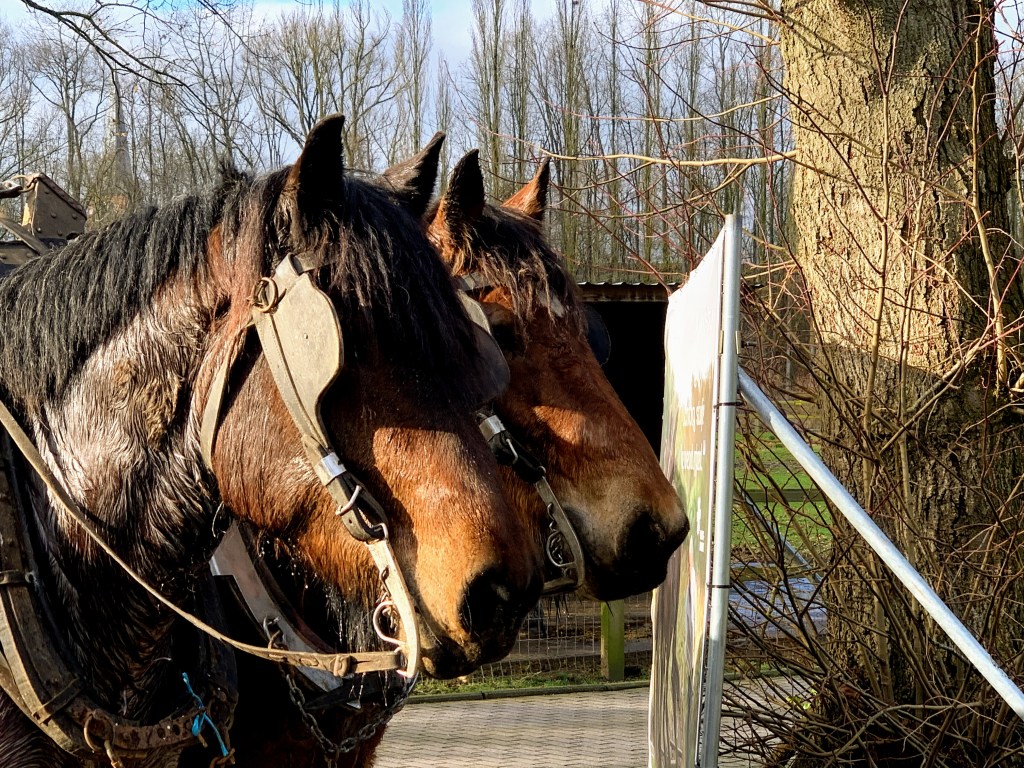 Wat verder drummen deze Brabantse boerepaarden om op de foto te kunnen. Dit streekproduct zal nog meerdere keren onze tocht opfleuren. Ik vind het prachtige beesten.
