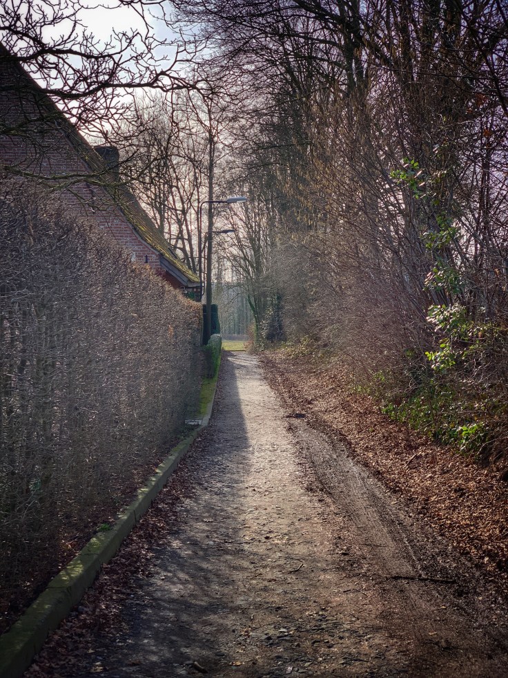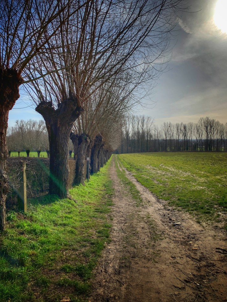 We kruisen wat later de Ninoofsesteenweg en trappen daarna flink door langs veldbanen en dorpsteegjes door een prachtige omgeving.