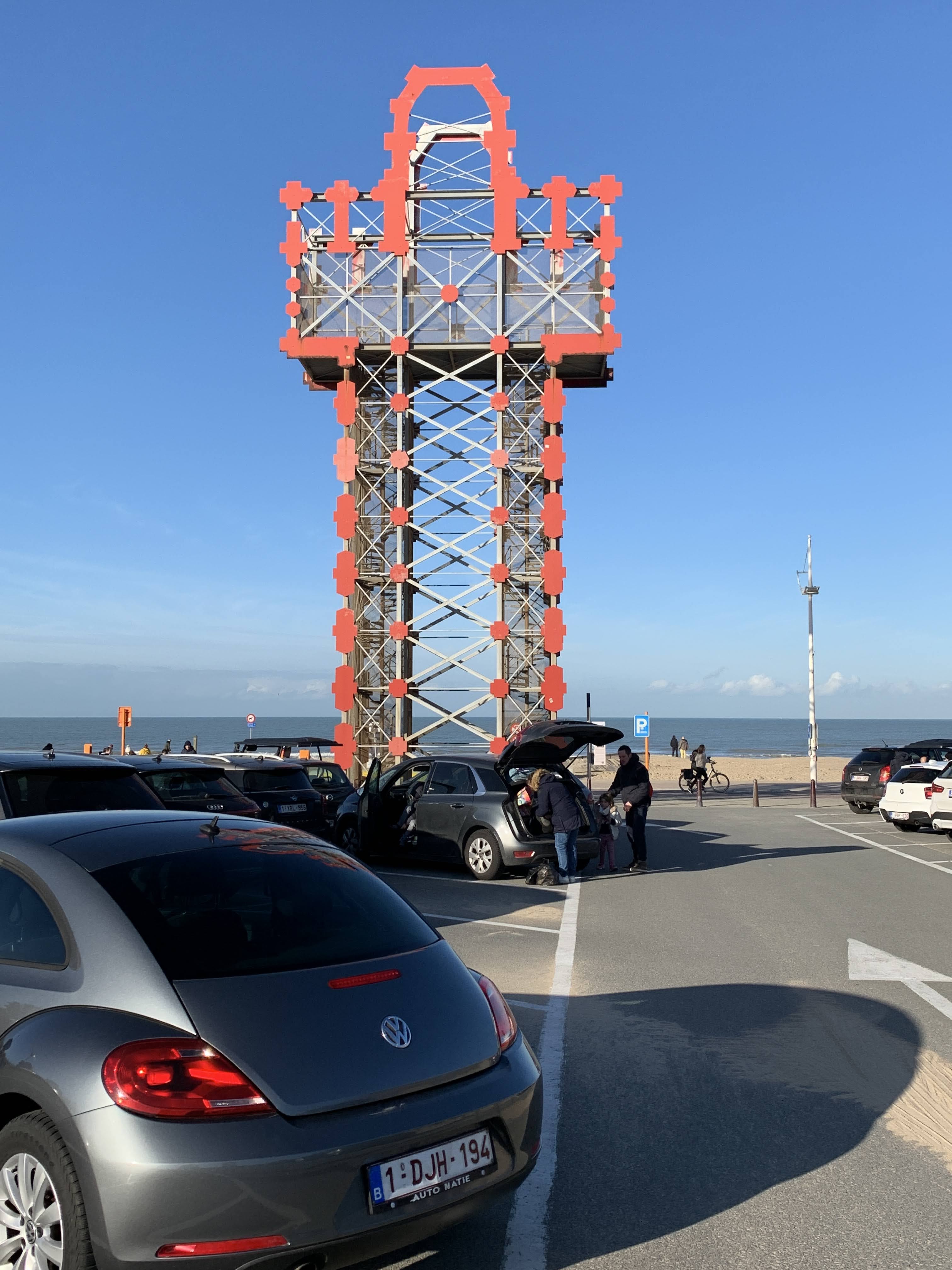 We verlaten het mooie fietspad naast de IJzer (mogelijks het mooiste pad aan de kust). Meteen trekt een speciaal gebouw onze aandacht.