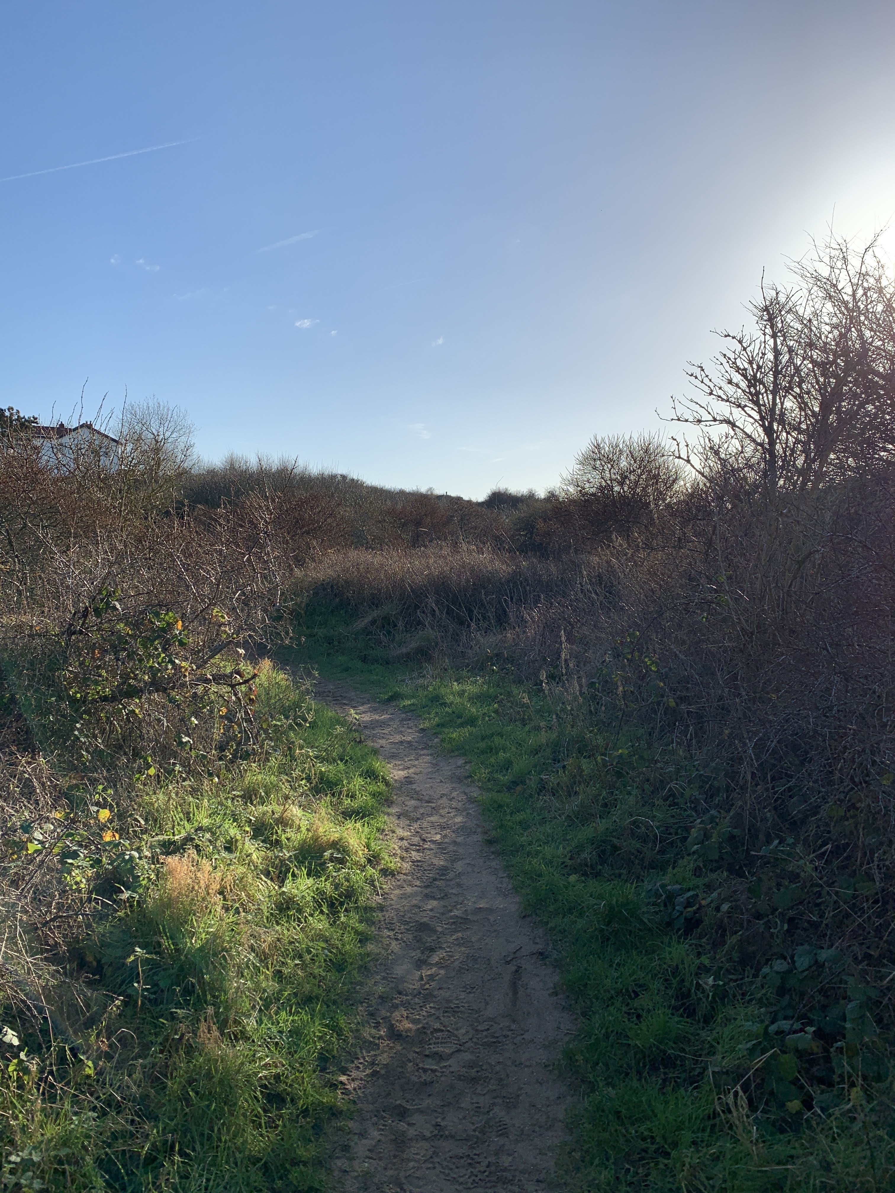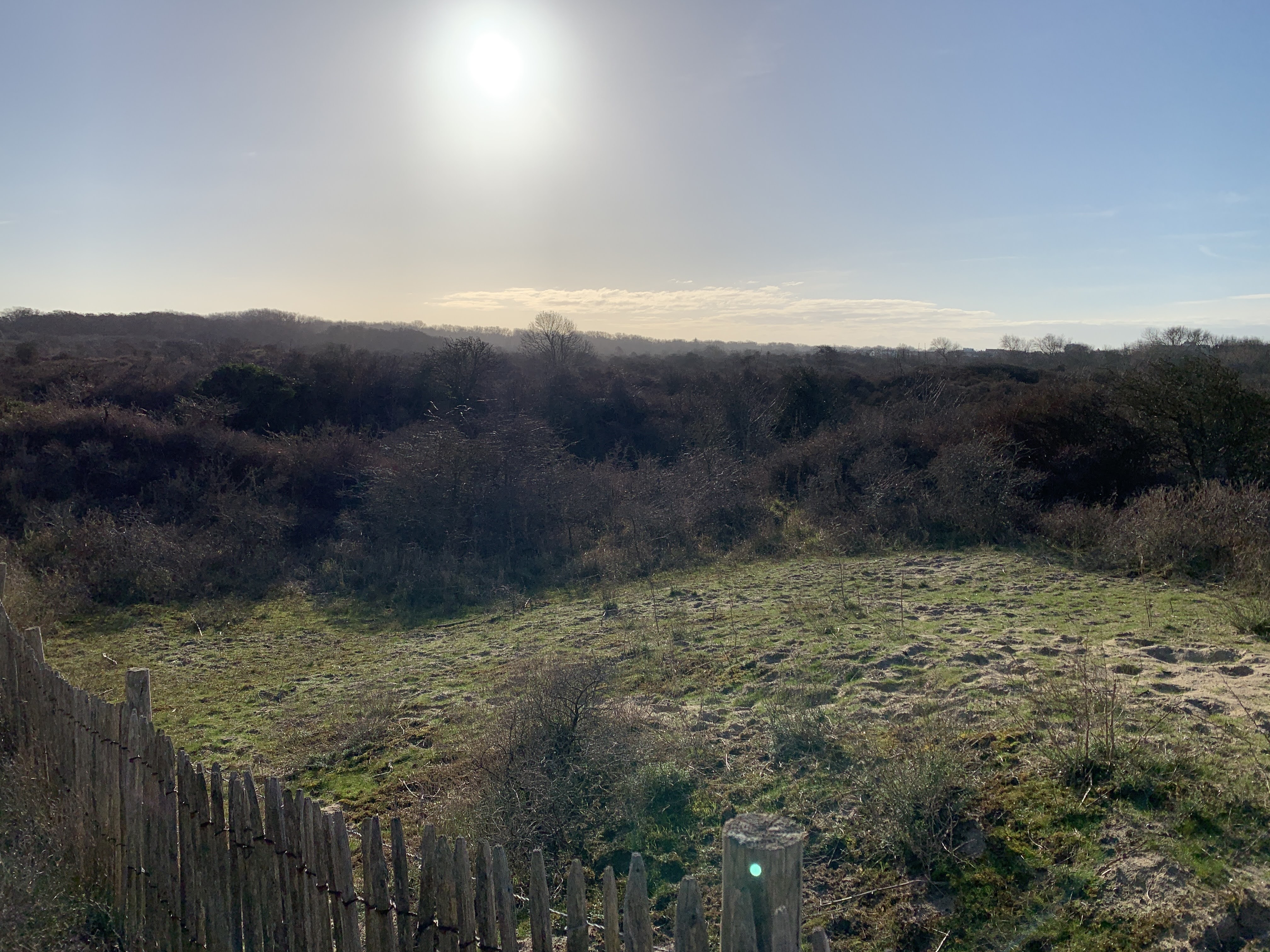Eventjes door “Het Zoute” en daarna langs een knuppelpad naar de duinen.