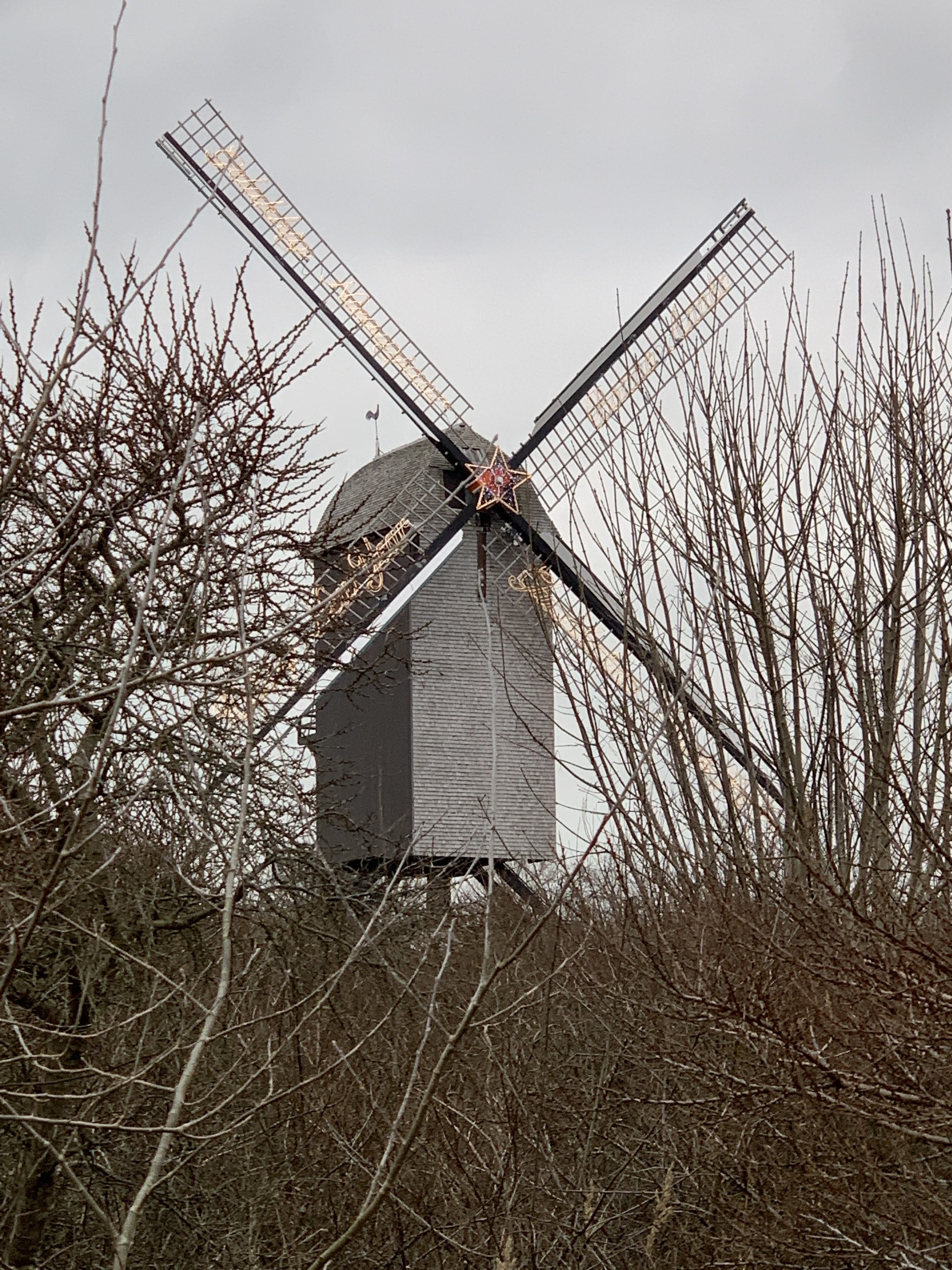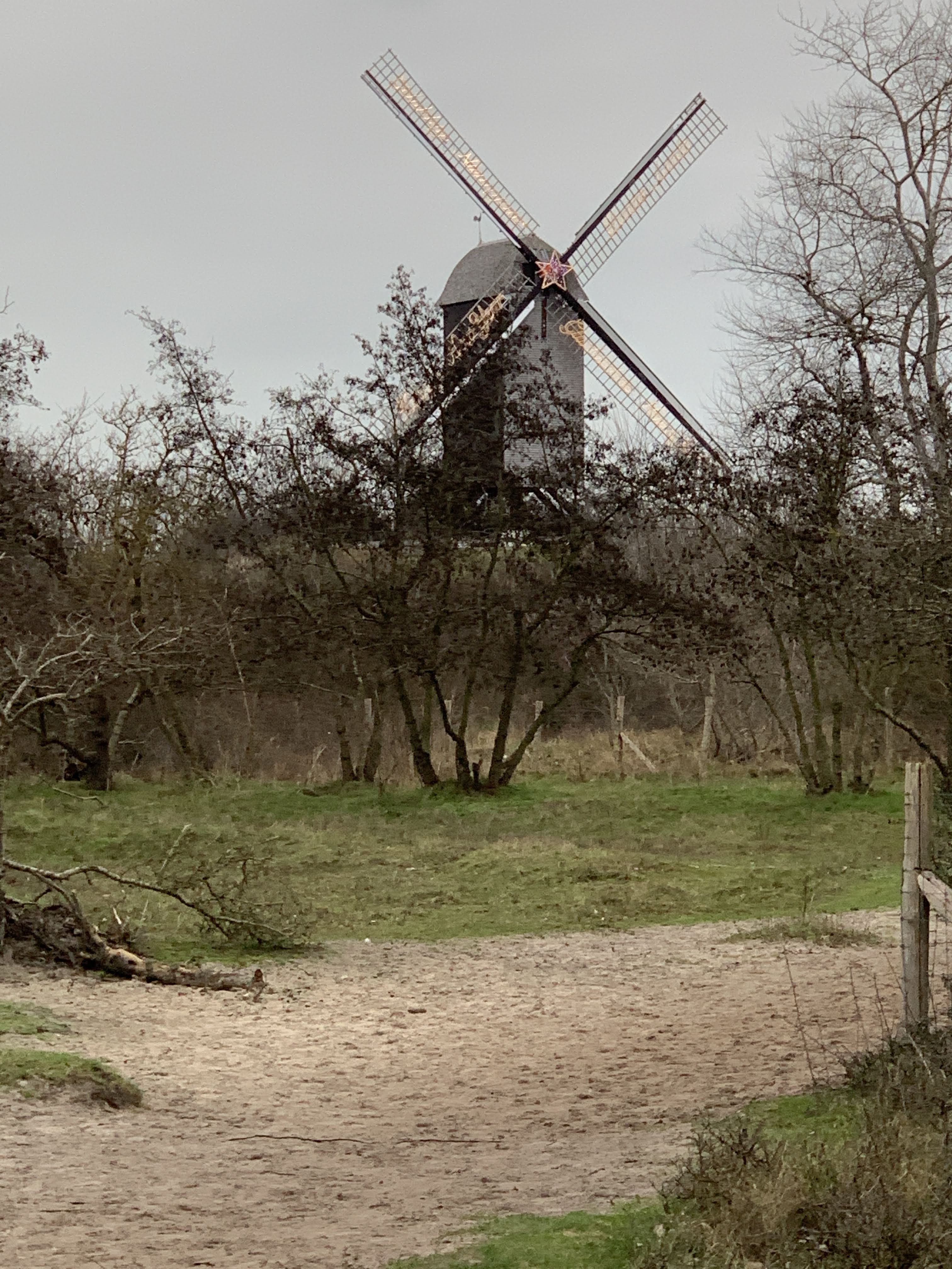 Nu kuieren we verder langs villaatjes en duinen tot de Zuid-Abdijmolen opdoemt met in zijn zog het abdijmuseum (Onze-Lieve-Vrouw ter Duinen abdij).