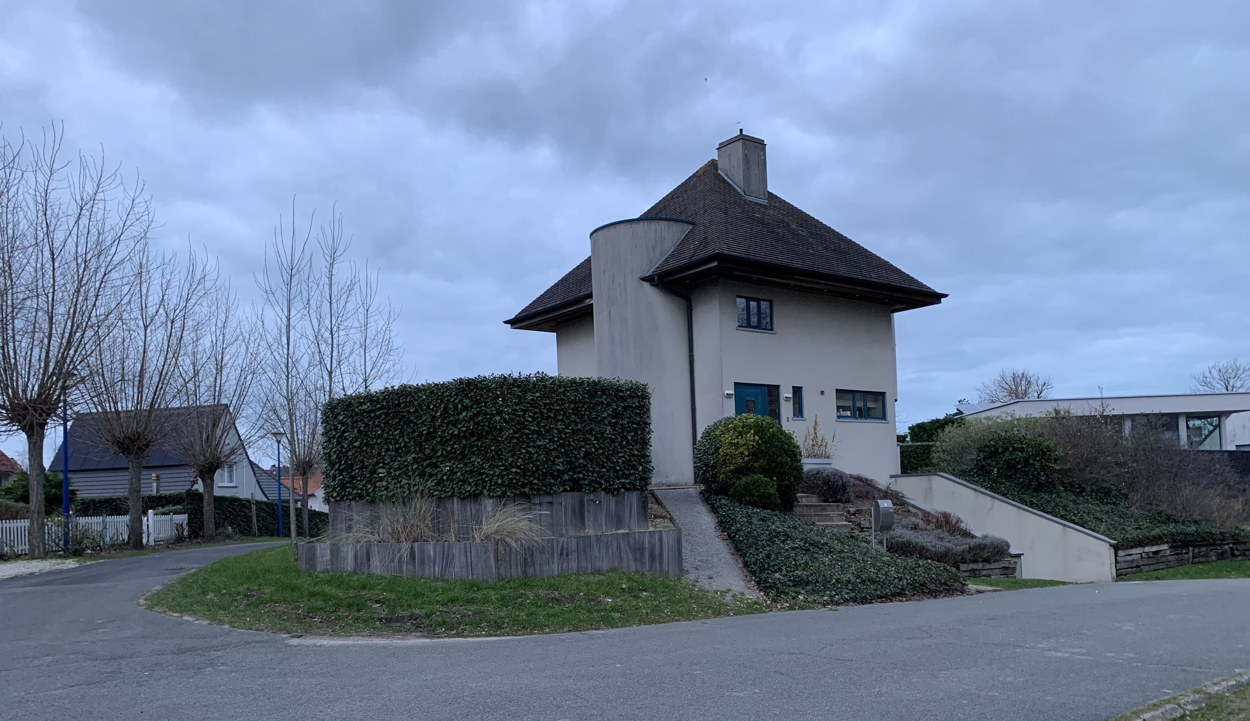 Achter de “houtsaegerduinen” (moderne schrijfwijze) duikt een villawijk op zoals we ze hier nog zien.We draaien van de Nieuwpoortlaan weg en rijden de villawijk binnen. Deze modernistische villa moet op de foto. “Le Carbet”of “de Scheepswerf” is de naam van deze speciale woonst. Architect Marcel Leborgne.