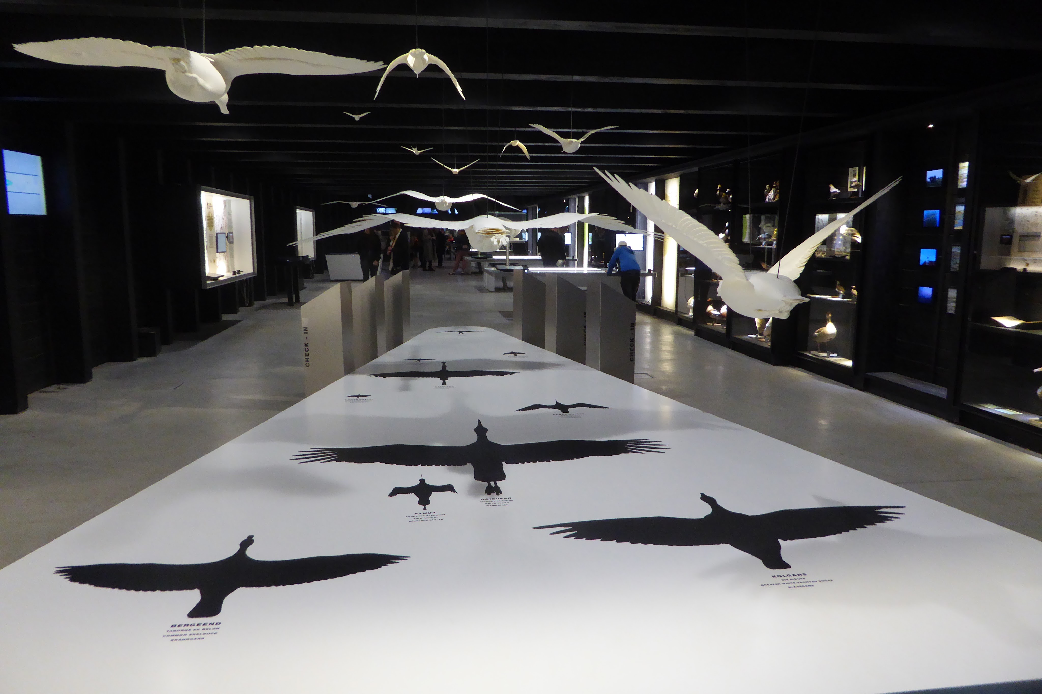 Daarna wandelen we naar de exporuimte. Deze expo is wel echt de moeitewaard. `Wat hier op een zeer moderne, interactieve manier wordt aangeboden heeft ons sterk verbaasd. Zowel jong als oud komt hier aan zijn trekken en verlaat deze ruimte met een breder inzicht over de natuur en (trek)vogels in het bijzonder.